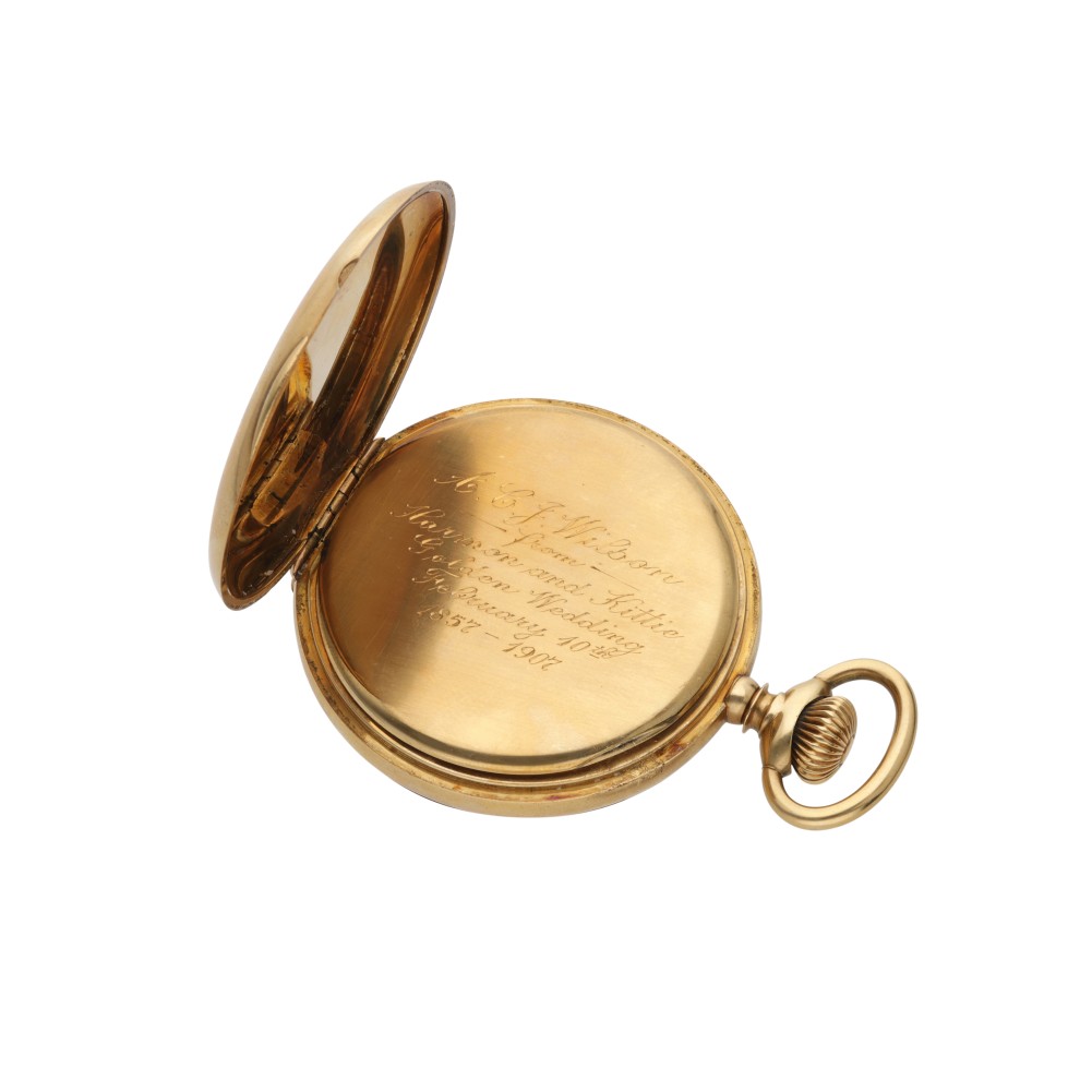 Shreve & Co. was incorporated as a jeweler in 1894 and is one of the oldest commercial establishments. In the late 1800s, they grew to be known as one of the finest silversmiths, however, pocket watches dating from 1882 have been signed with the Shreve & Co signature on the dial. The example today is double-signed by Shreve & Co. on the dial and movement.