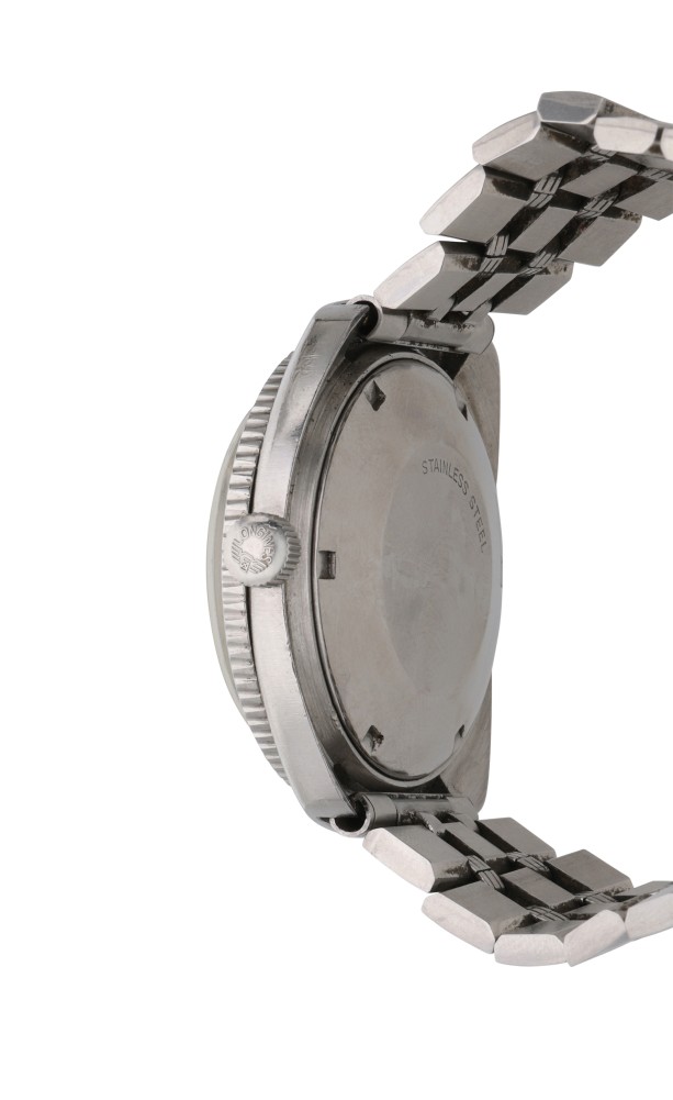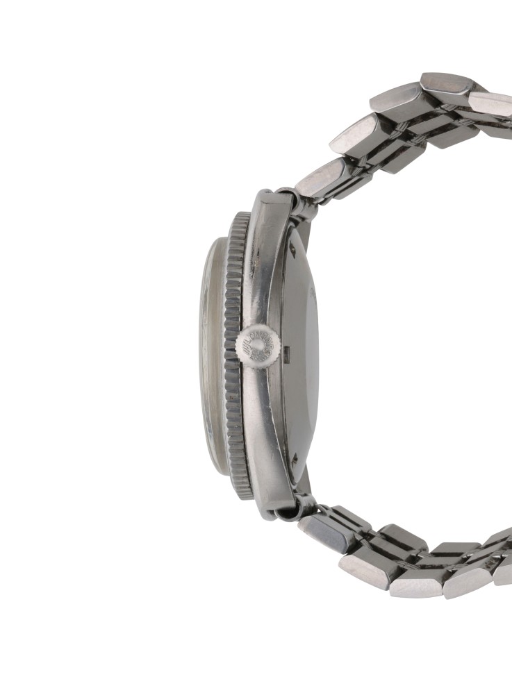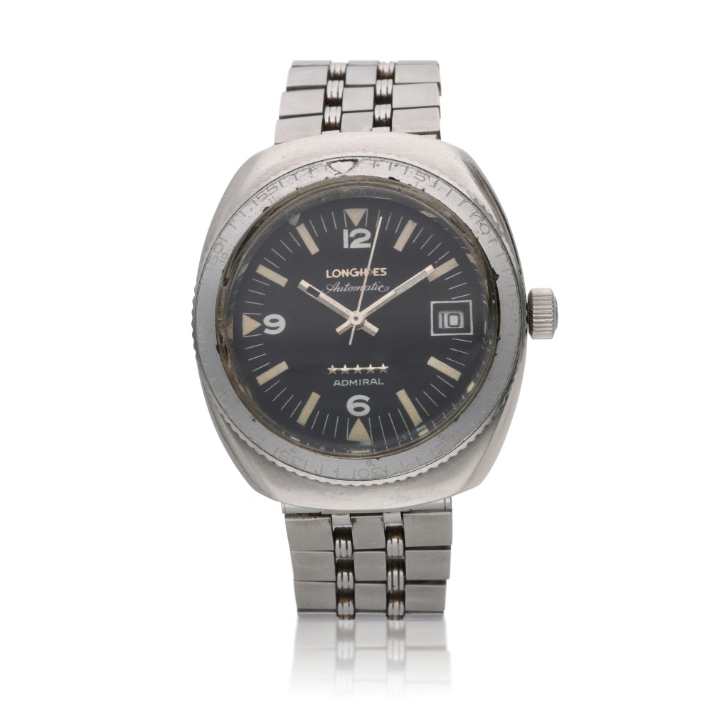 Founded in 1832 by Auguste Agassiz, Longines takes its name after the roadside location of the company?s first factory, meaning ?long meadows.? The Swiss-made Longines is one of the world?s oldest luxury watch brands. The Admiral series has gone through a design evolution through the decade and is often characterized by five aligned stars on the dial. This elegant vintage timepiece has a stainless case with a stainless steel bracelet. It also features a fixed stainless steel bezel, black dial with silver-tone hands, index hour markers and a date display at the 3 o’clock position.