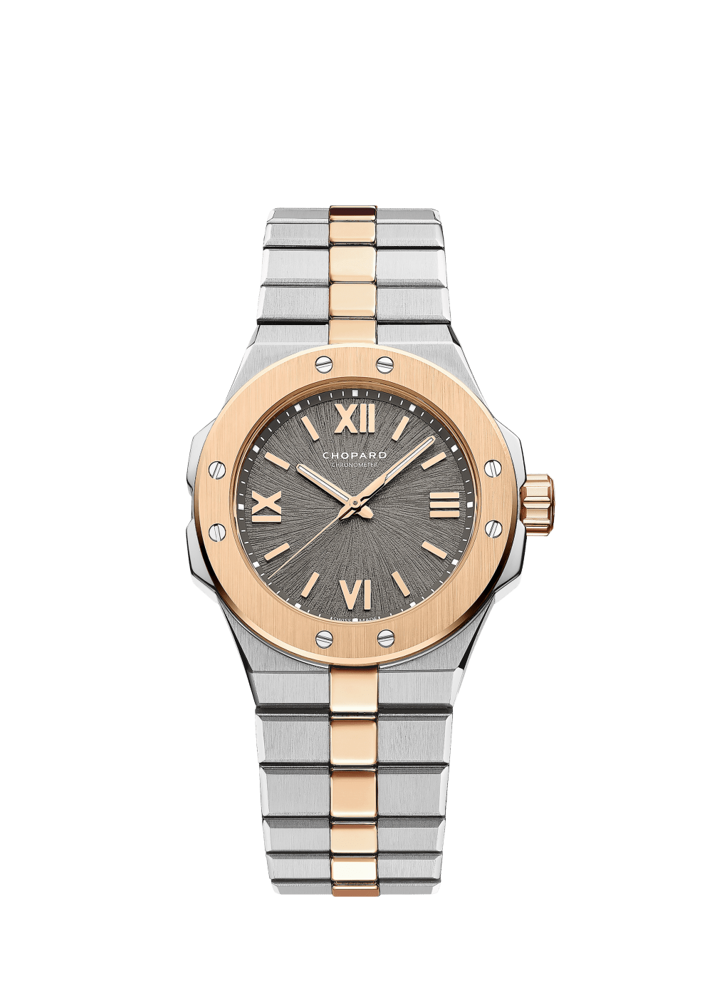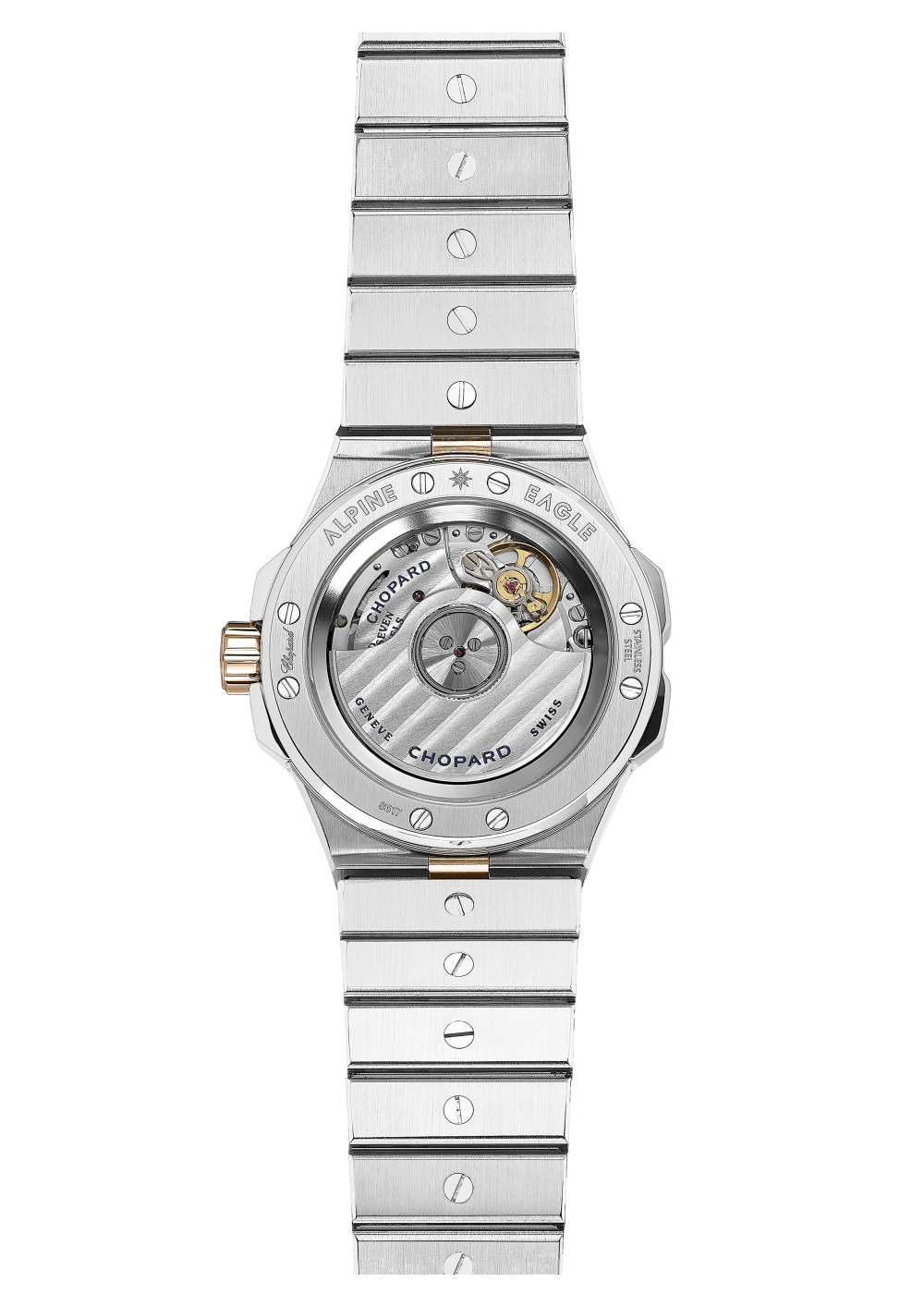 Contemporary, refined and assertive, the new sporty-chic Alpine Eagle timepiece collection is a contemporary reinterpretation of the St Moritz, the first watch created in 1980 by Karl-Friedrich Scheufele, now Co-President of Chopard. Imagined and personally designed by him, the Alpine Eagle was driven by his passion for the Alps and by the lofty power of the eagle that reigns supreme there. Crafted from an exclusive, ultra-resistant, light-reflecting metal named Lucent Steel? ? and ethical 18-carat rose gold, it beats to the rhythm of a Chronometer-certified movement. Alpine Eagle is dedicated to contemporary eagles, those aspiring persons who outperform in their daily lives and whose vision inspires and elevates. With foresight and determination, they act on the challenges of tomorrow and are innately aware of the importance of environmental issues.