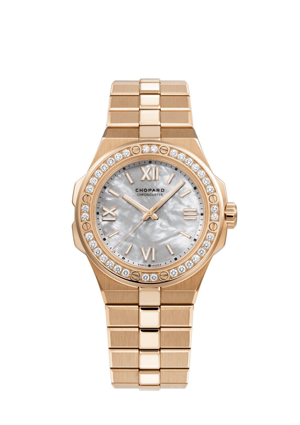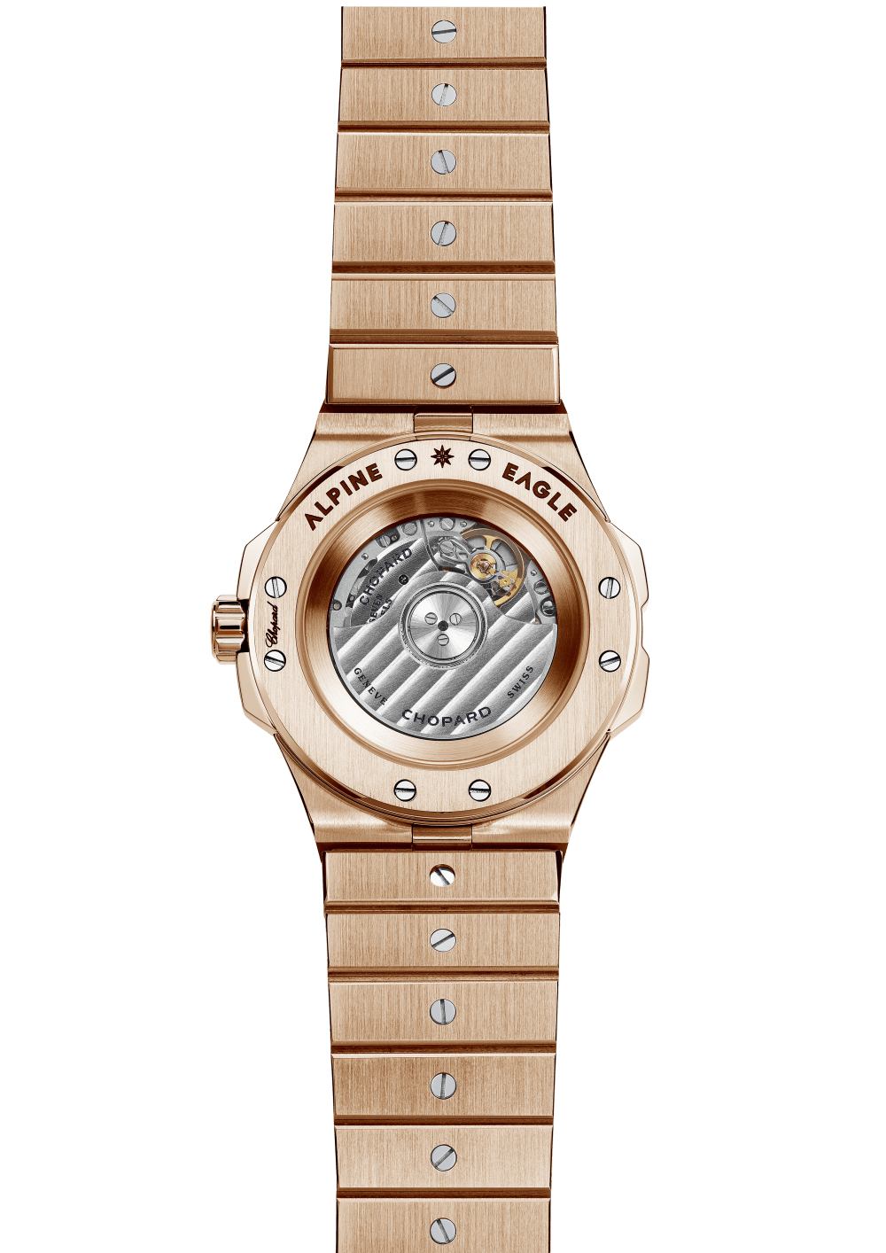 Contemporary, refined and assertive, the new sport-chic Alpine Eagle timepiece collection is a contemporary reinterpretation of the St Moritz, the first watch created in 1980 by Karl-Friedrich Scheufele, now copresident of the Chopard house. Imagined and personally designed by him, the Alpine Eagle was driven by his passion for the Alps and by the lofty power of the eagle that reigns supreme there. Crafted in ethical 18-carat rose gold and set with diamonds, it beats to the rhythm of a Chronometer-certified movement. Alpine Eagle is dedicated to contemporary eagles, the aspiring persons who outperform in their daily lives and whose vision inspires and elevates. With foresight and determination, they act on the challenges of tomorrow and are innately aware of the importance of environmental issues.