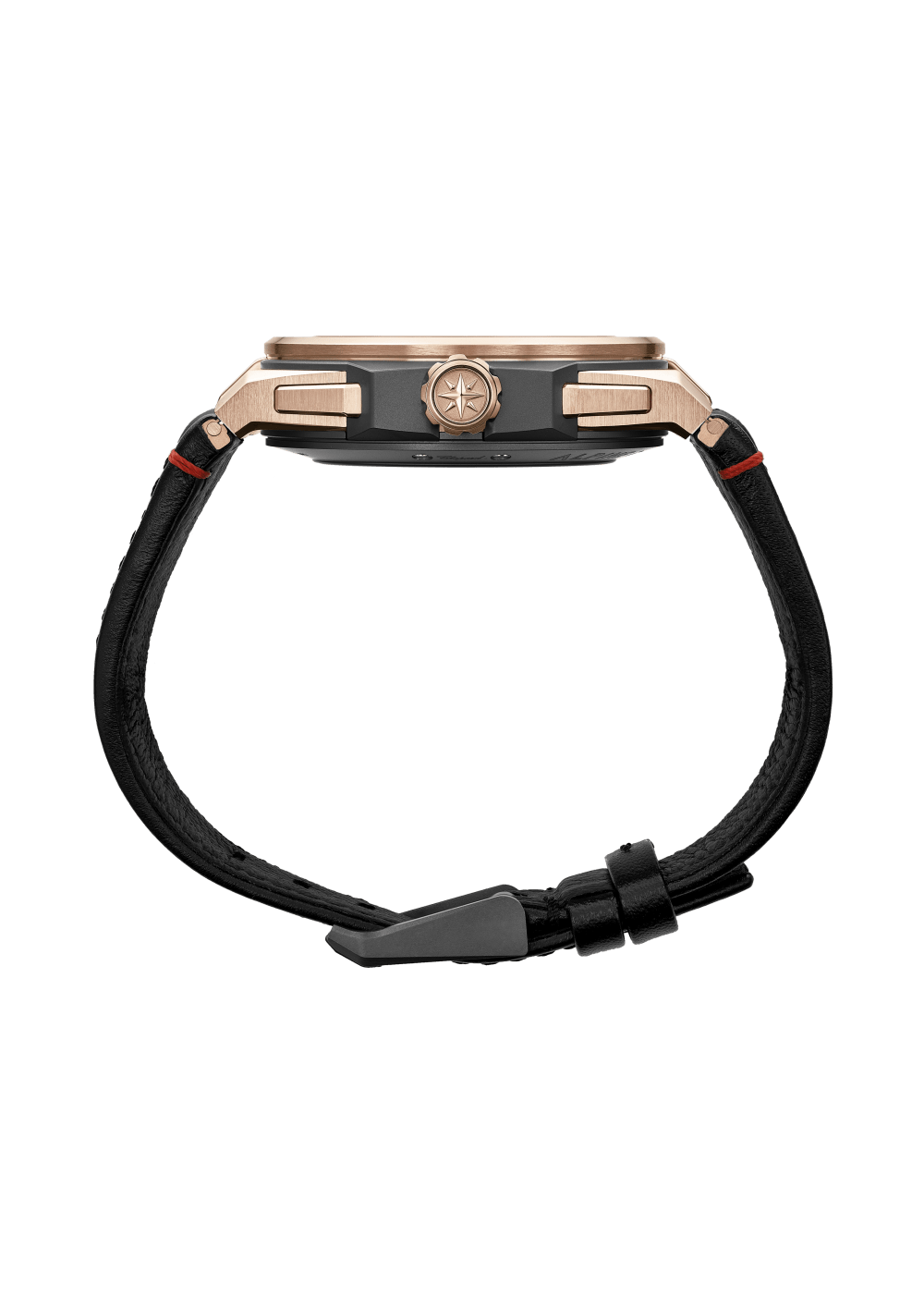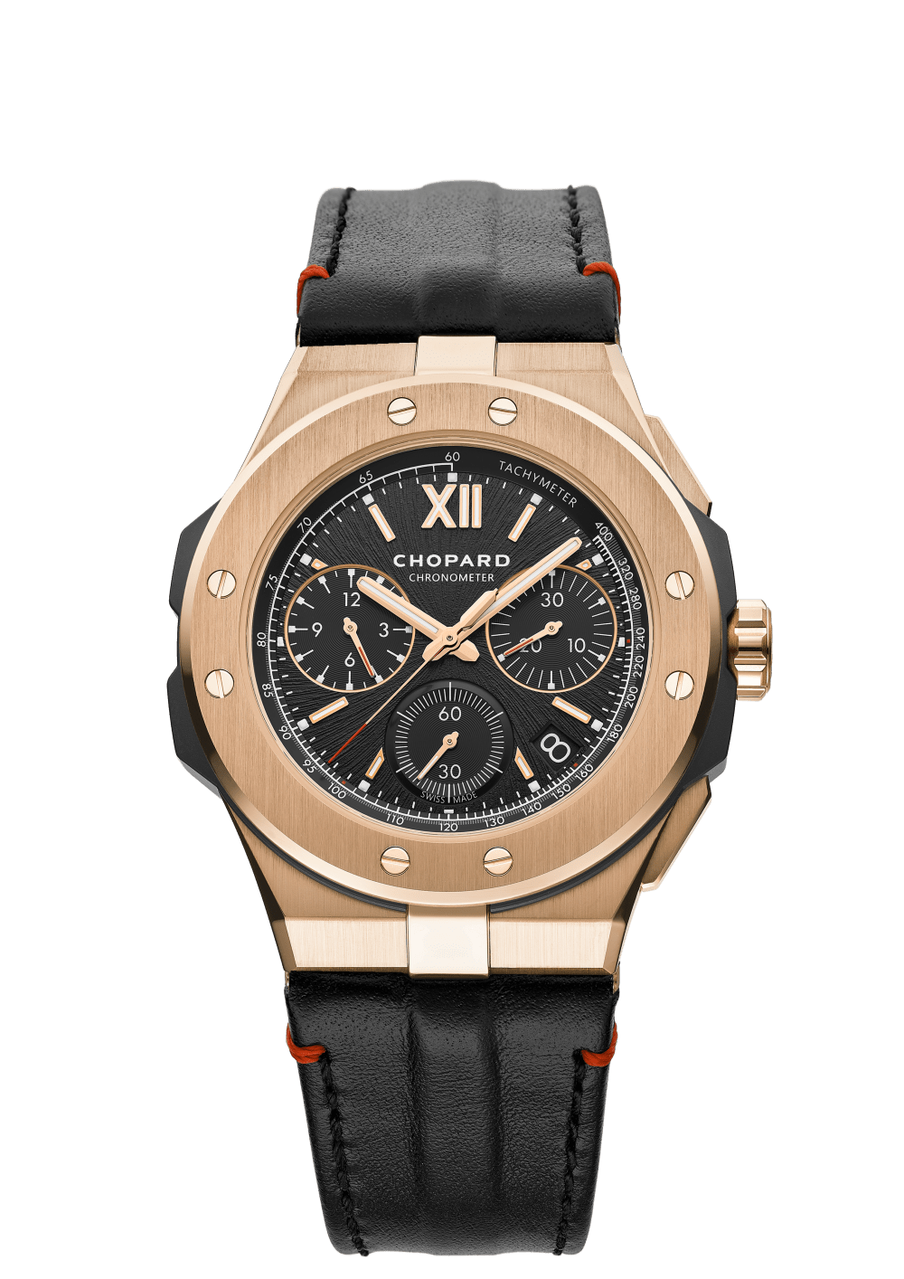 Elegant yet sporty, the new Alpine Eagle XL Chrono is a modern interpretation of the St. Moritz launched in 1980, the first watch designed by Karl-Friedrich Scheufele, today Co-President of Chopard. Expressing its creator’s passion for the Alps and inspired by the nobility of the eagle, this timepiece is crafted in ethical 18-carat rose gold and ceramized titanium, and features a chronometer-certified integrated chronograph movement with a flyback feature. Alpine Eagle pays tribute to today’s eagles ? those ambitious people who surpass themselves on a daily basis, and whose vision is an inspiration for their peers. Determined and avant-garde, they rise to tomorrow’s challenges with verve, and are instinctively aware of the importance of environmental issues.