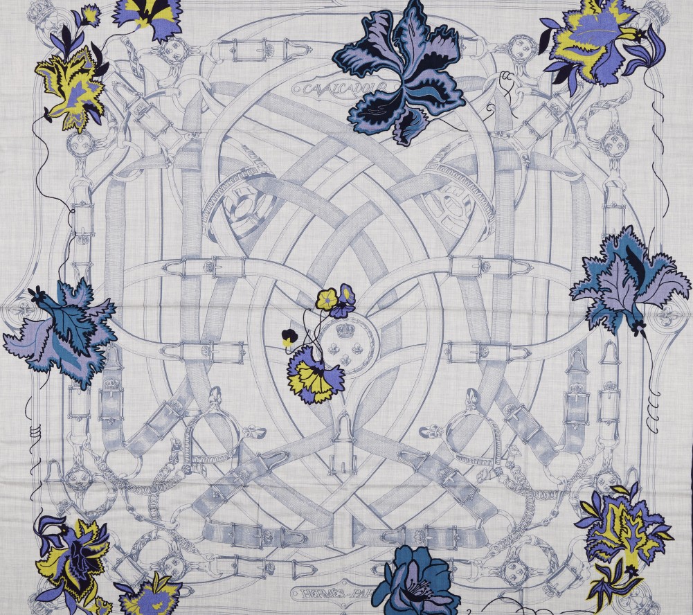 Herm?s Amethyst Cavalcadour Fleuri Cashmere and Silk Shawl 140