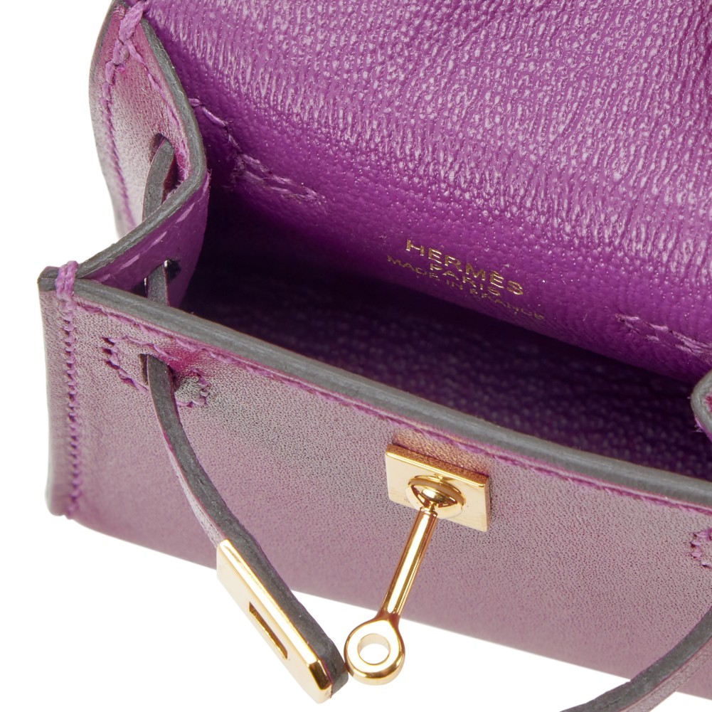 Herm?s Ane?mone Tadelakt Micro Mini Kelly Twilly Bag Charm Gold Hardware, 2021