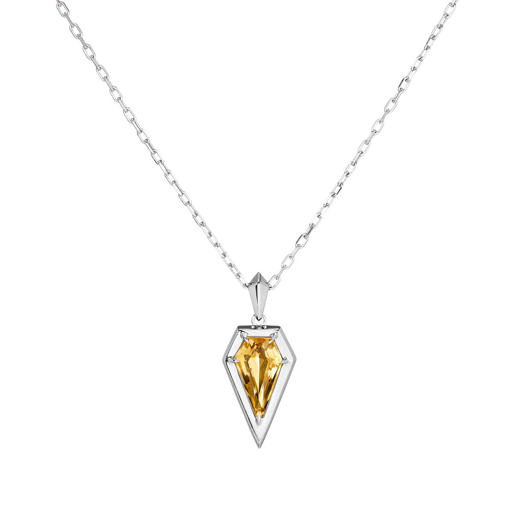 Featuring a lemon-colored citrine framed in a white gold bezel setting.