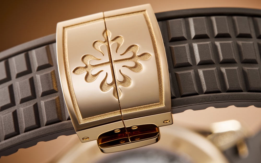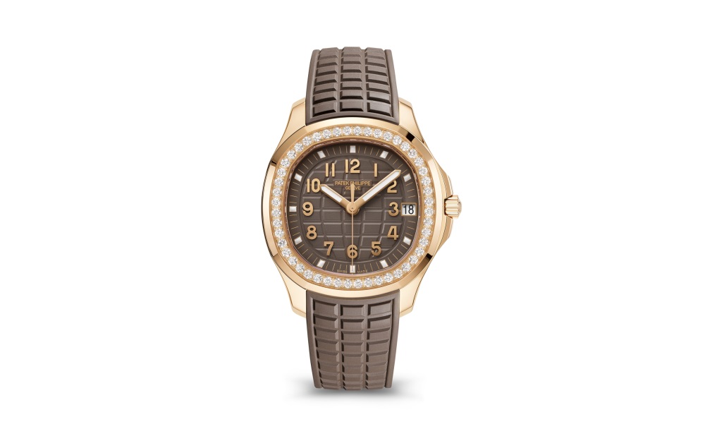 Patek Philippe reinterprets the self-winding Aquanaut Luce in rose gold with an elegant “taupe”-colored dial and strap ? a warm shade of gray that matches the “contemporary sporty chic” style of this ladies’ model.