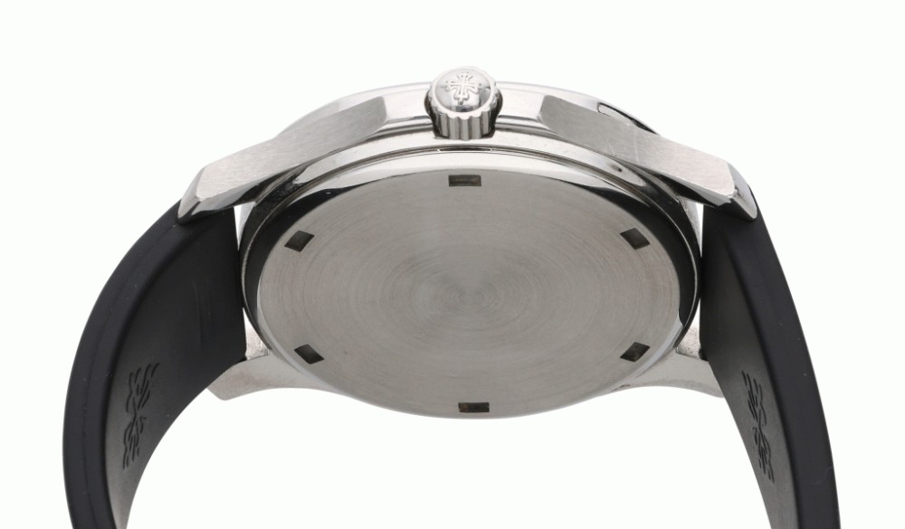 Embodying the modern interpretation of a luxury sport watch, the Aquanaut by Patek Philippe was first introduced to the market in 1996 as the reference 5060. Rumored to have been limited to approximately 1,000 pieces, the reference 5060 was only available for one short year, then immediately replaced by the reference 5066 which features a sapphire crystal display back. As the first Aquanaut reference, it features many small distinctive details only found on the earliest versions, from the early caliber 330 SC movement and solid case back to the cursive font on the date aperture.