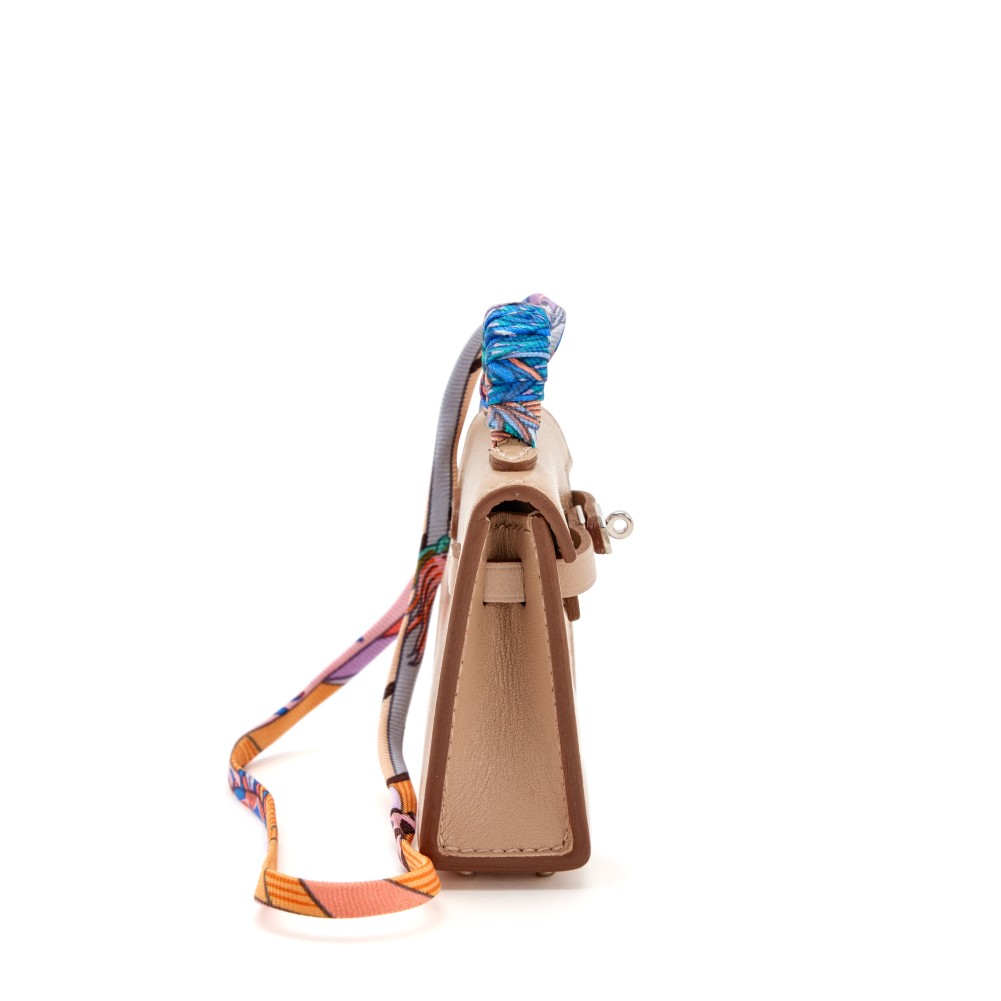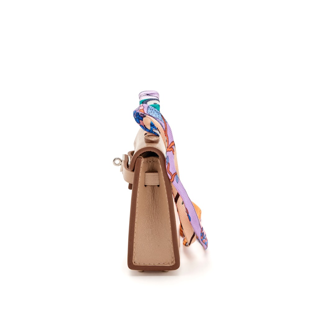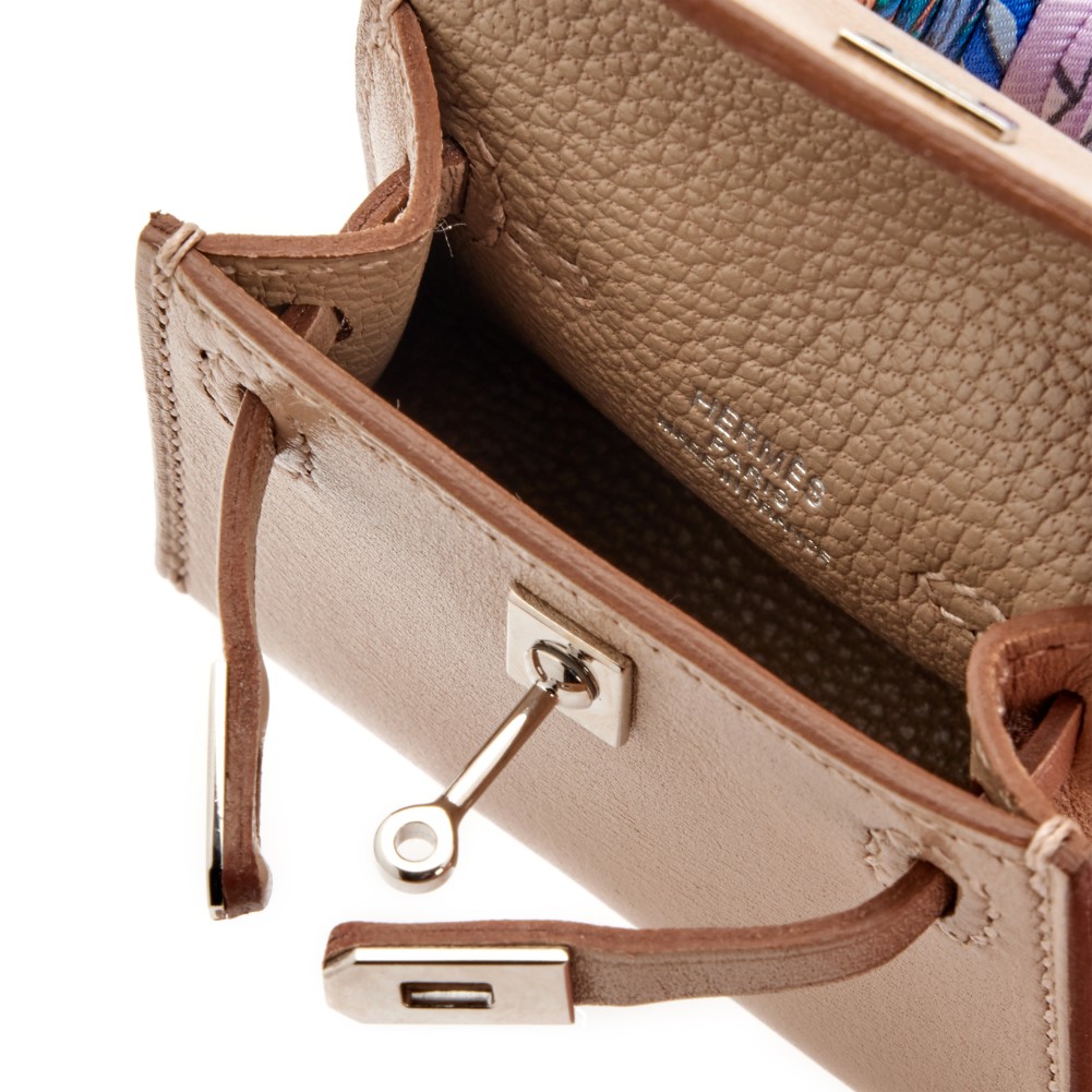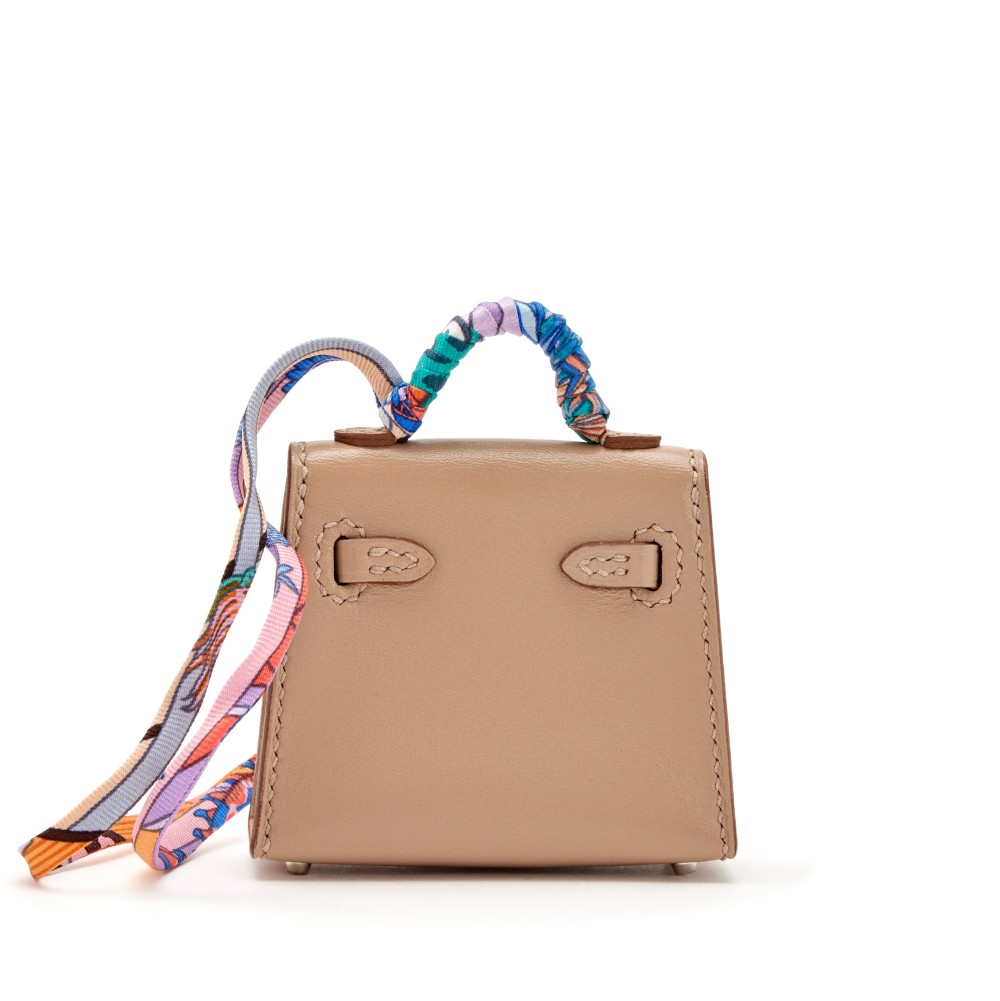 Herm?s Argile Tadelakt Micro Twilly Kelly Bag Charm Palladium Hardware, 2021
