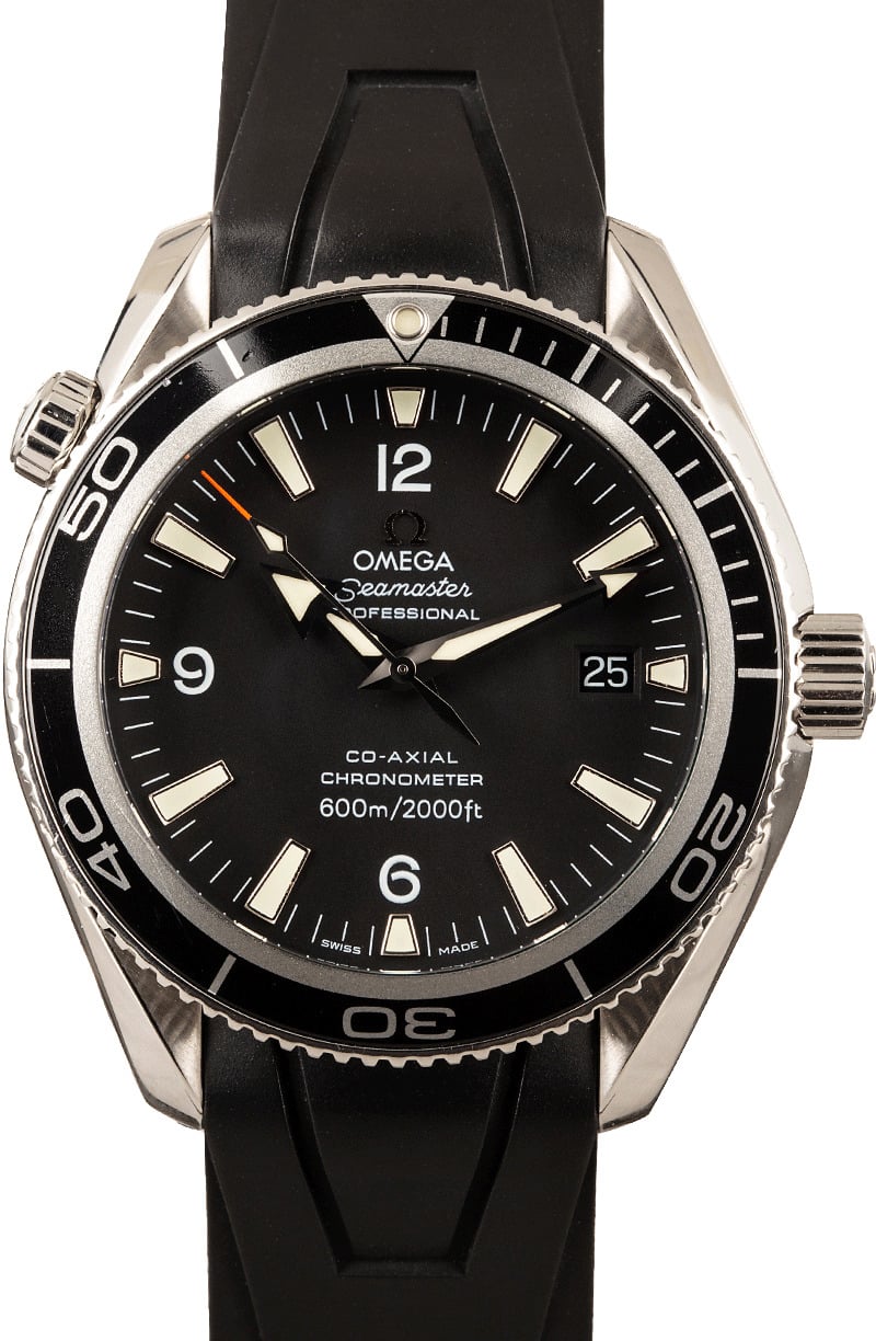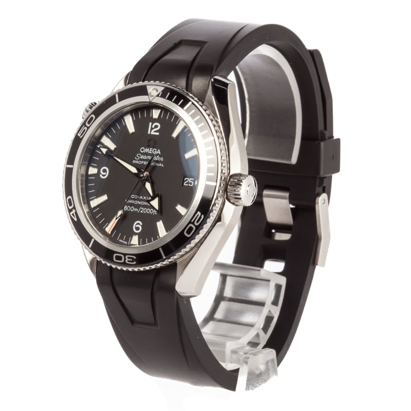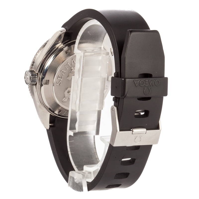 Why should you buy the Omega Seamaster Planet Ocean Big Size reference 2900.50.91? For starters, the watch is robust without appearing too flashy or over-the-top at 45.5mm in diameter. The ref. 2900.50.91 also boasts Omega’s impressive calibre 2500 self-winding movement, complete with a 48-hour power reserve and a Co-Axial escapement. The case is waterproof up to 600 meters and is equipped with a uni-directional bezel with a ceramic insert, making this Seamaster ideal for use both on land and while in the sea. The sleek rubber bracelet adds the finishing touch, making this pre-owned Omega hard for many avid collectors to resist.