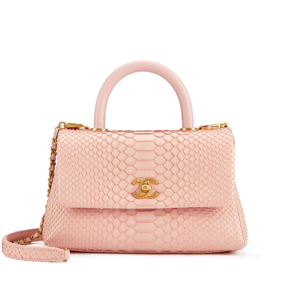 Chanel Baby Pink Python Coco Top Handle Flap Bag Brushed Gold Hardware, 2018