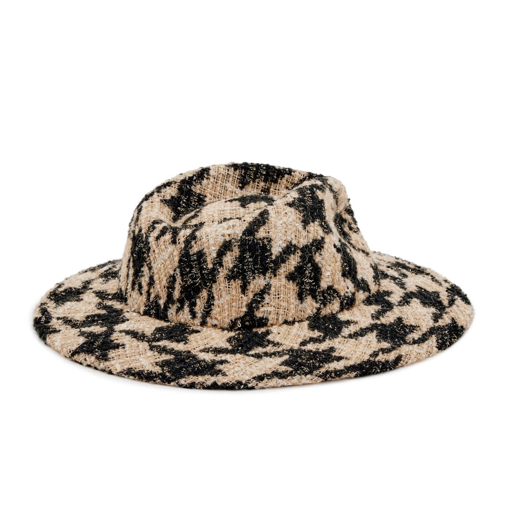 Chanel Beige, Black and Silver Houndstooth Tweed Fedora Hat Size M, 2019