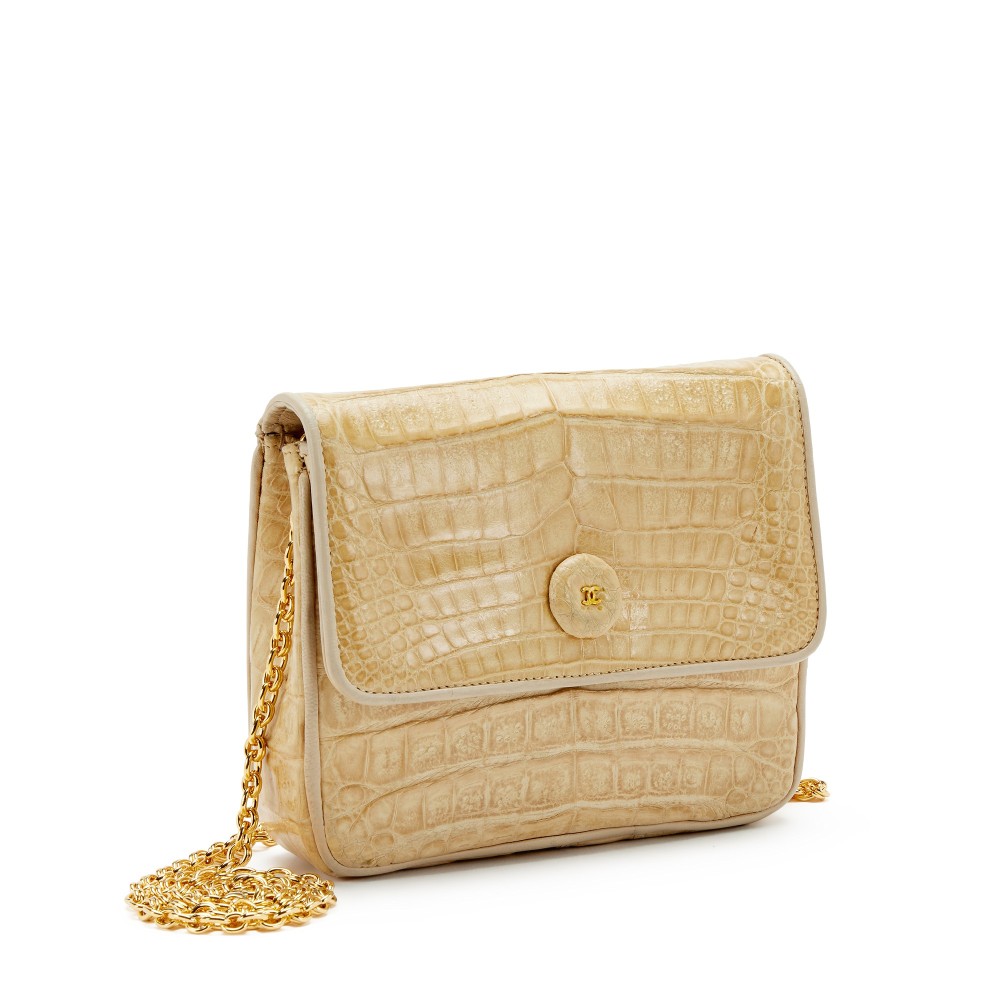 Chanel Beige Crocodile Mini CC Button Flap Bag Gold Hardware, 1986-1988