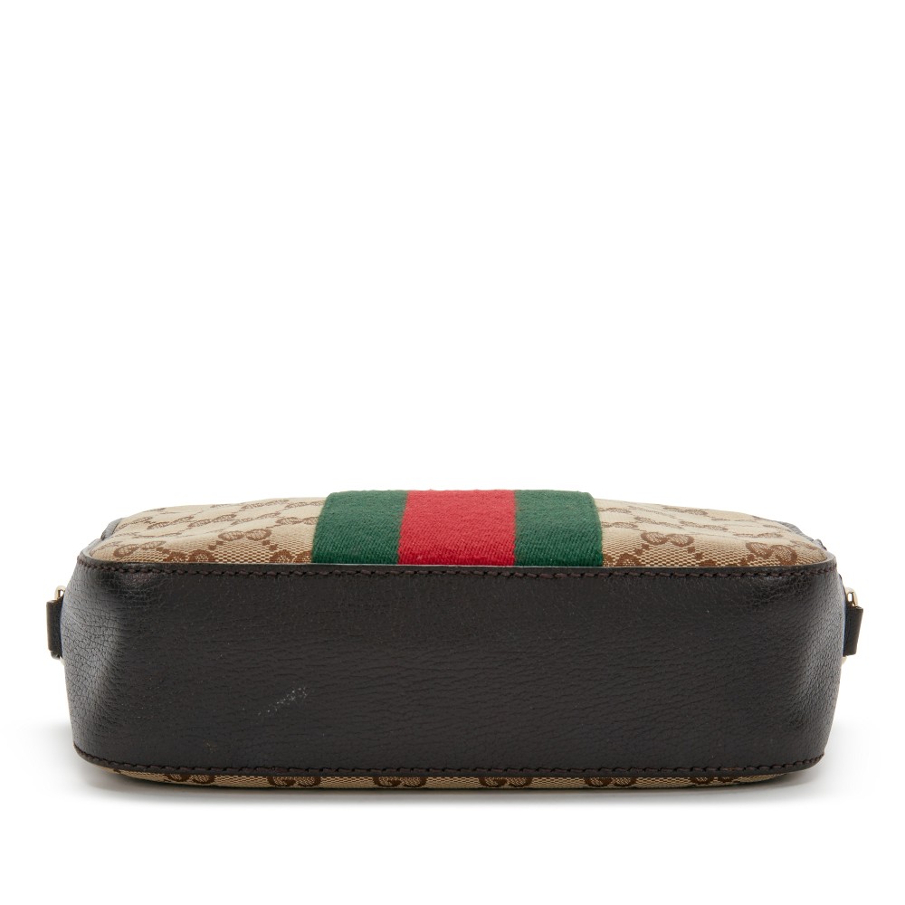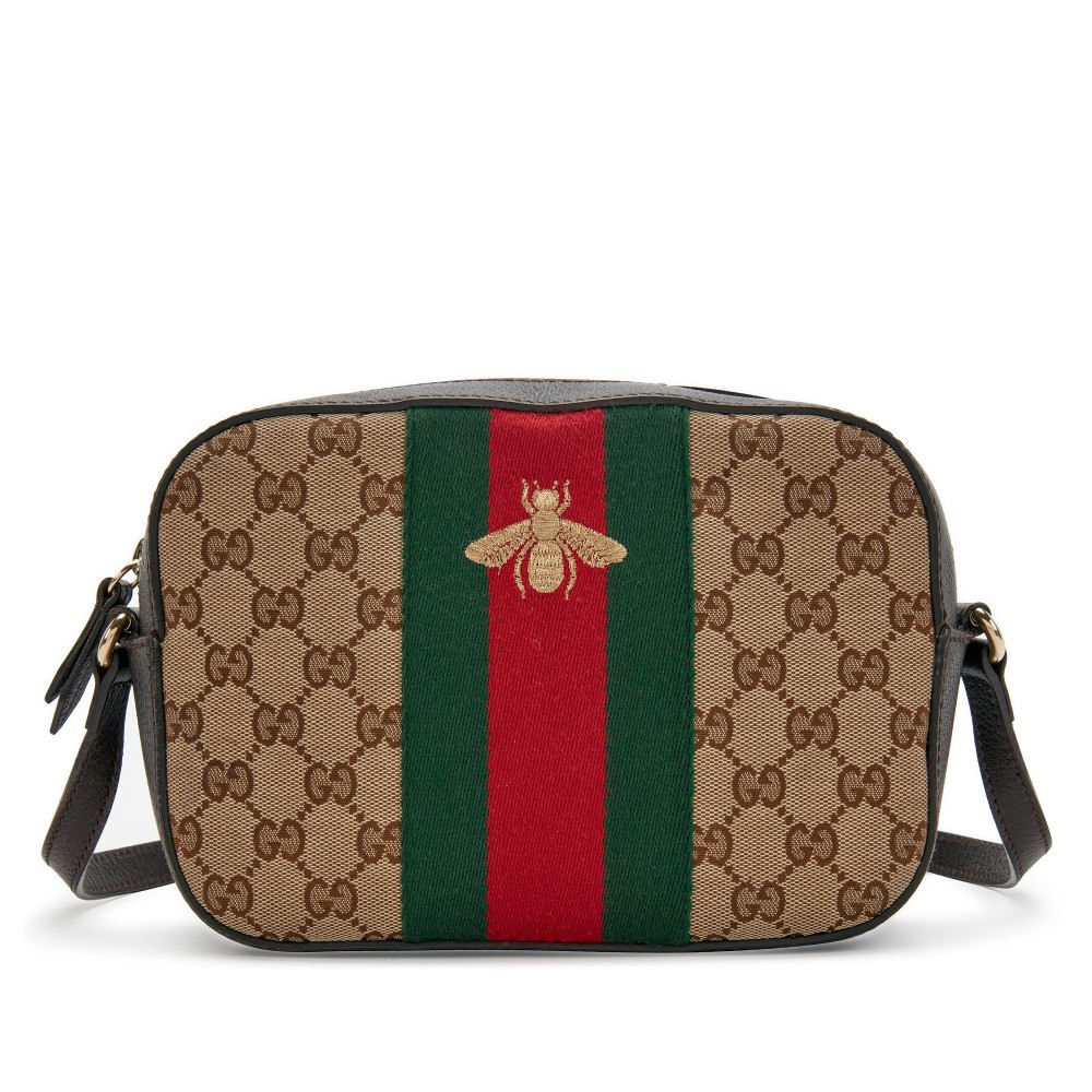 Gucci Beige GG Monogram Canvas Bee Web Camera Bag Gold Hardware