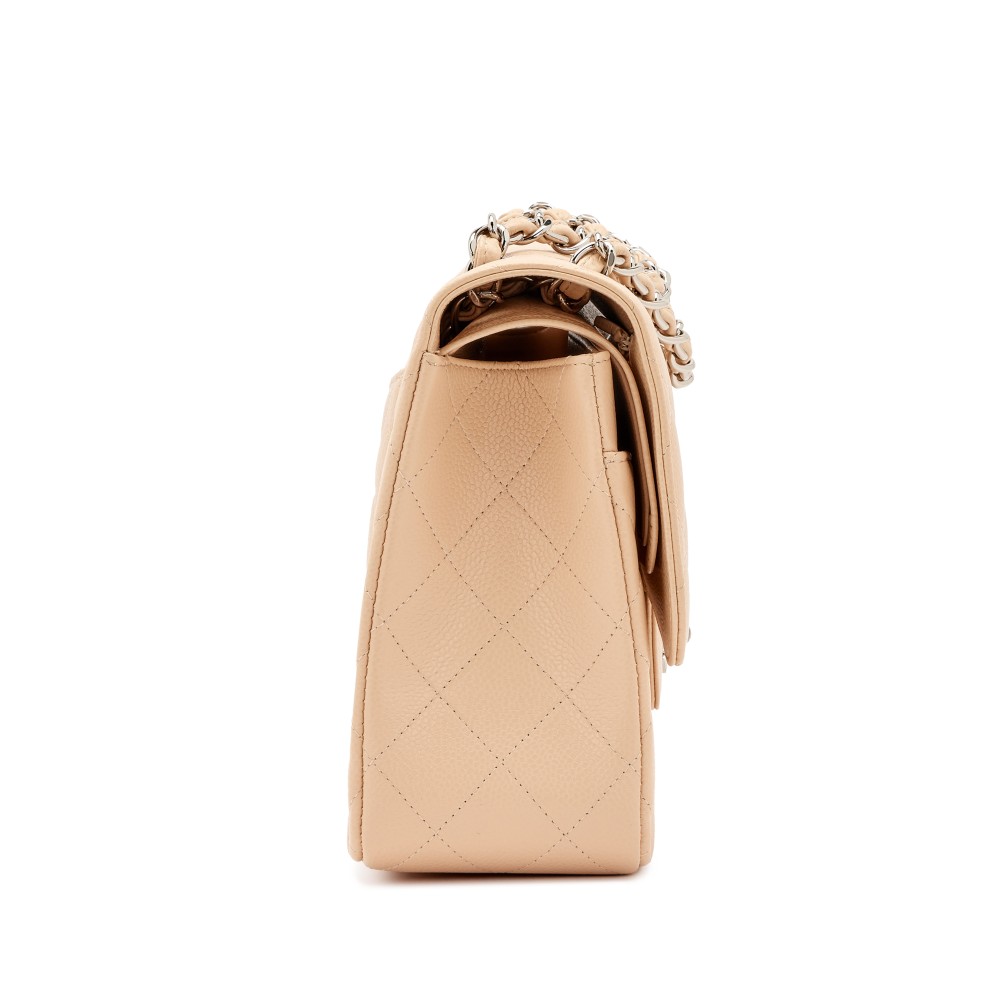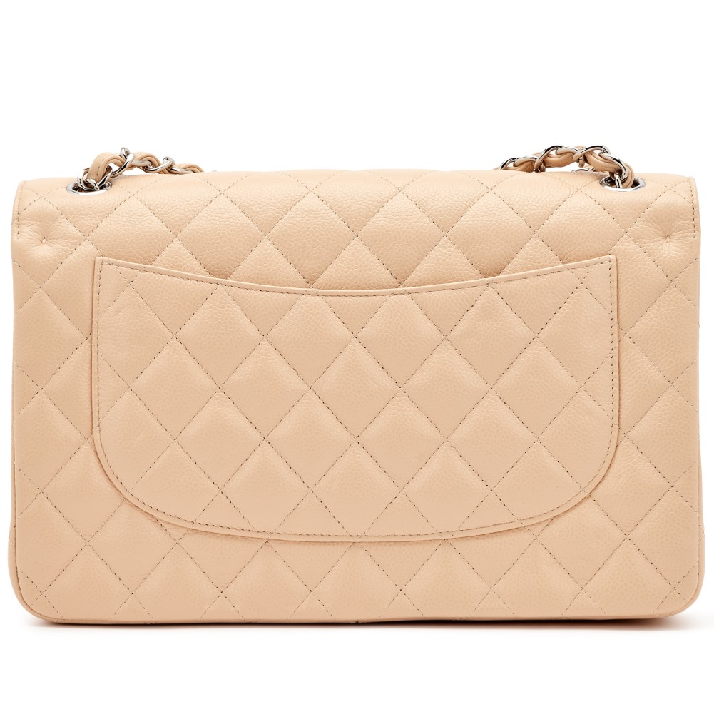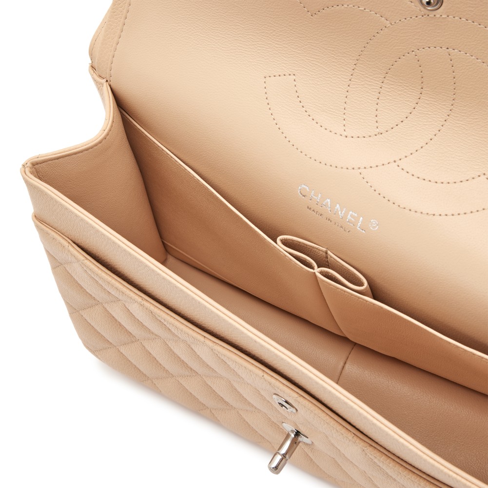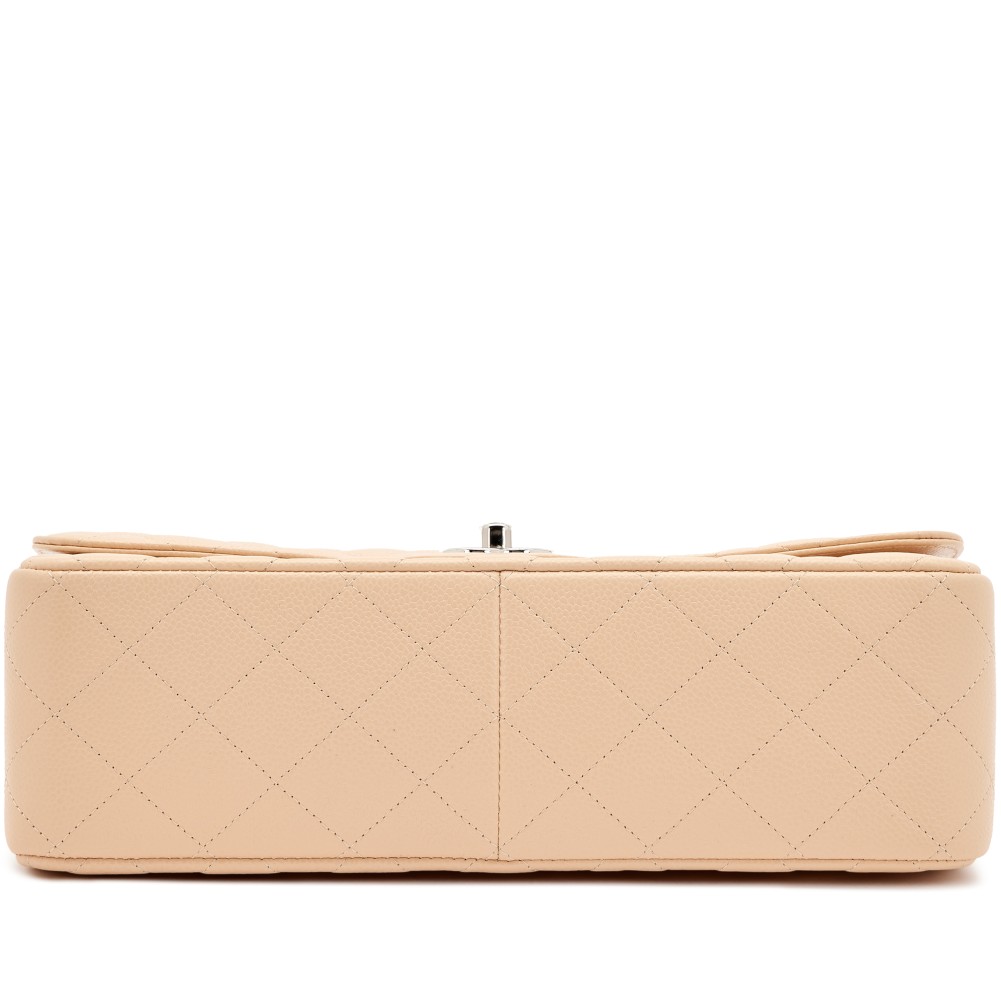 Chanel Beige Quilted Caviar Jumbo Double Flap Bag Silver Hardware, 2017