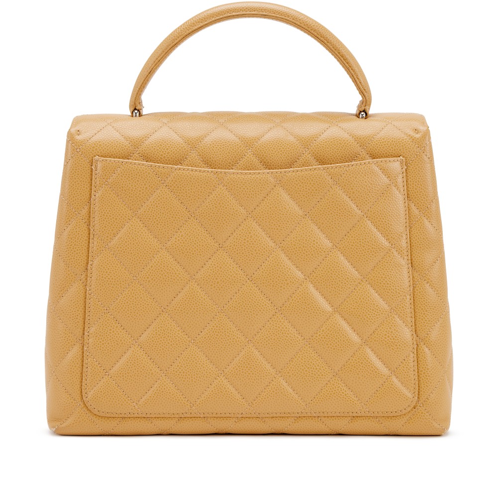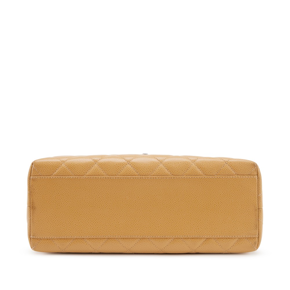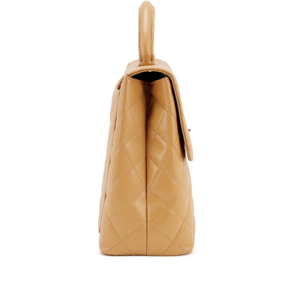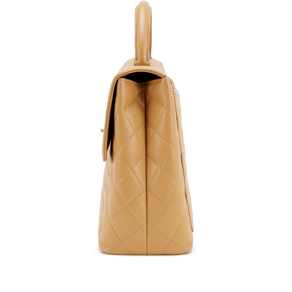 Chanel Beige Quilted Caviar Large Kelly Flap Top Handle Silver Hardware, 1997-1999