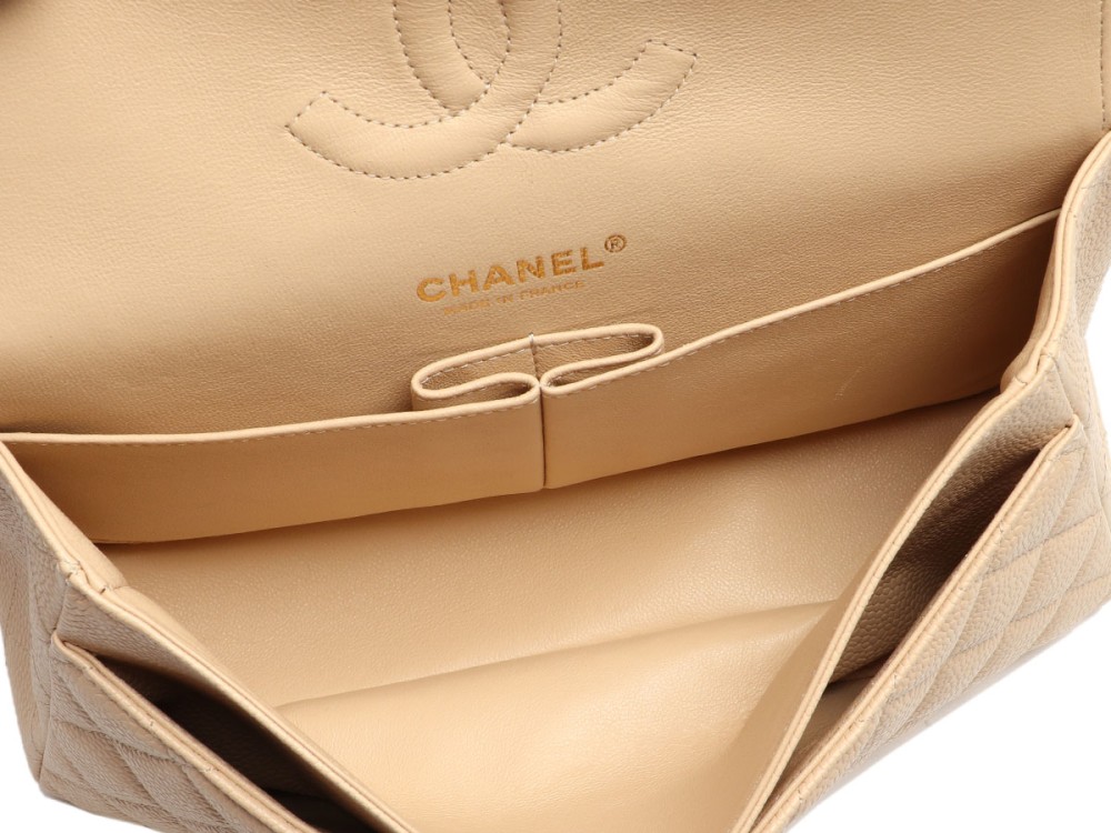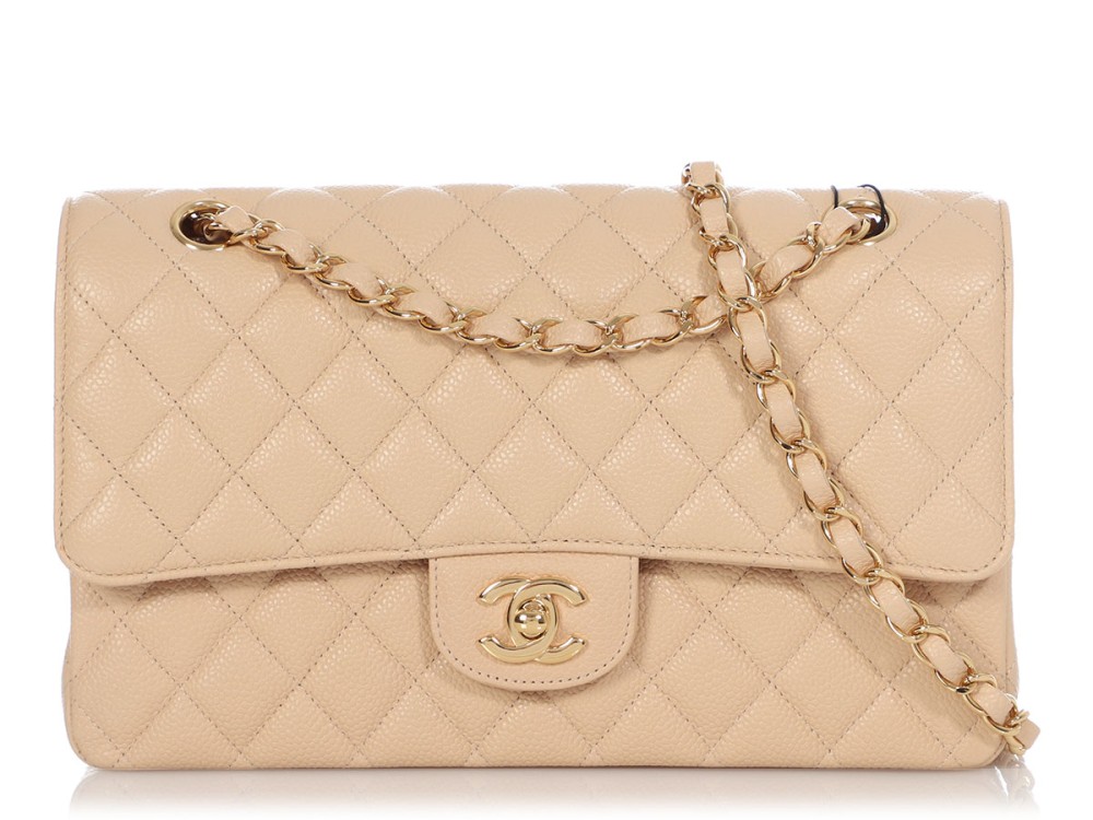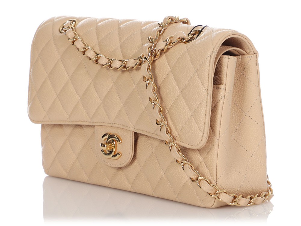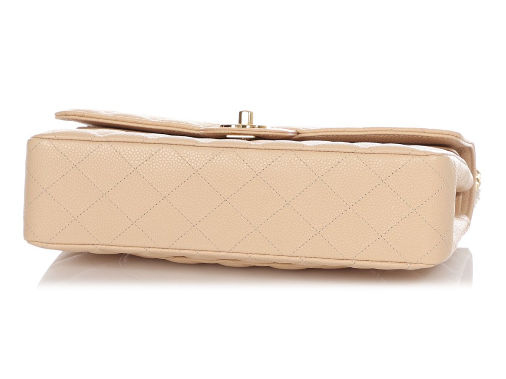 Chanel Beige Quilted Caviar Medium Classic Double Flap Gold Hardware, 2017
