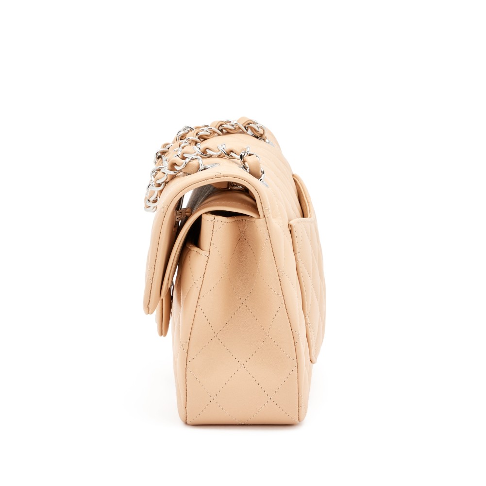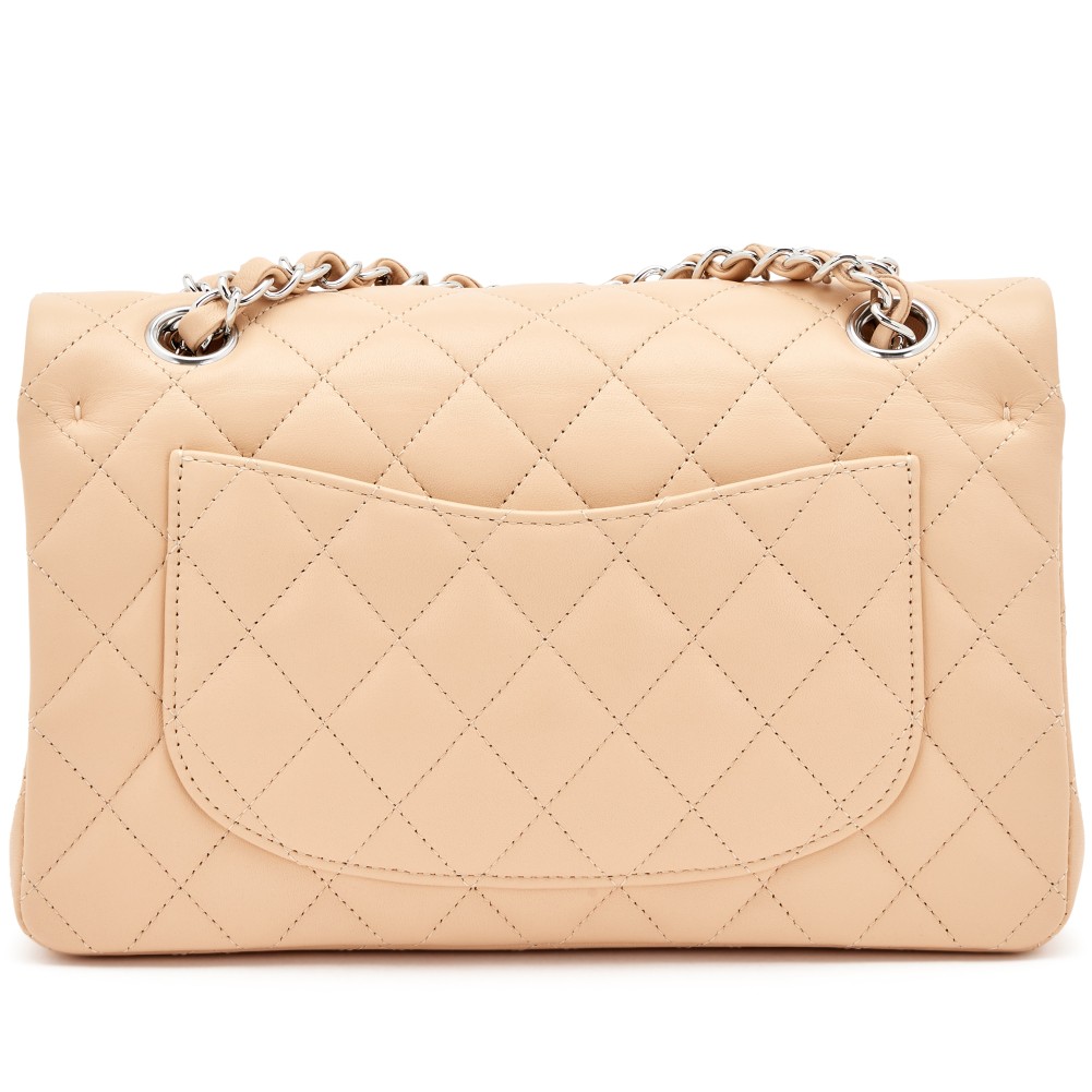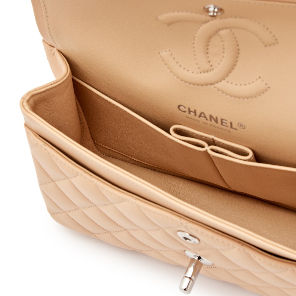 Beige Quilted Caviar Small Classic Double Flap Silver Hardware