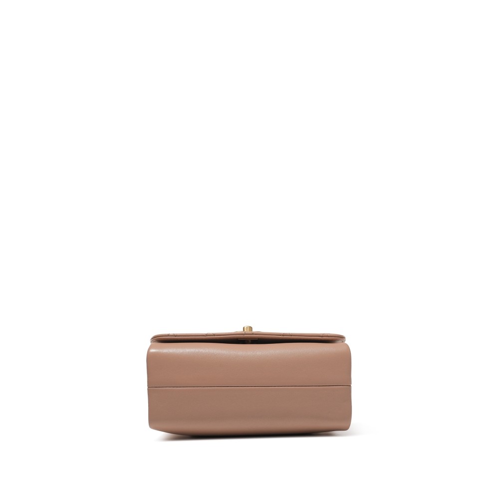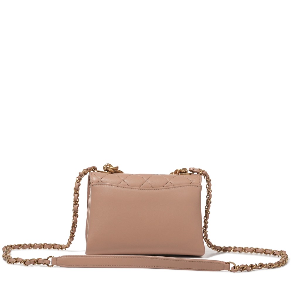 Chanel Beige Quilted Lambskin and Imitation Pearl Flap Bag Gold Hardware