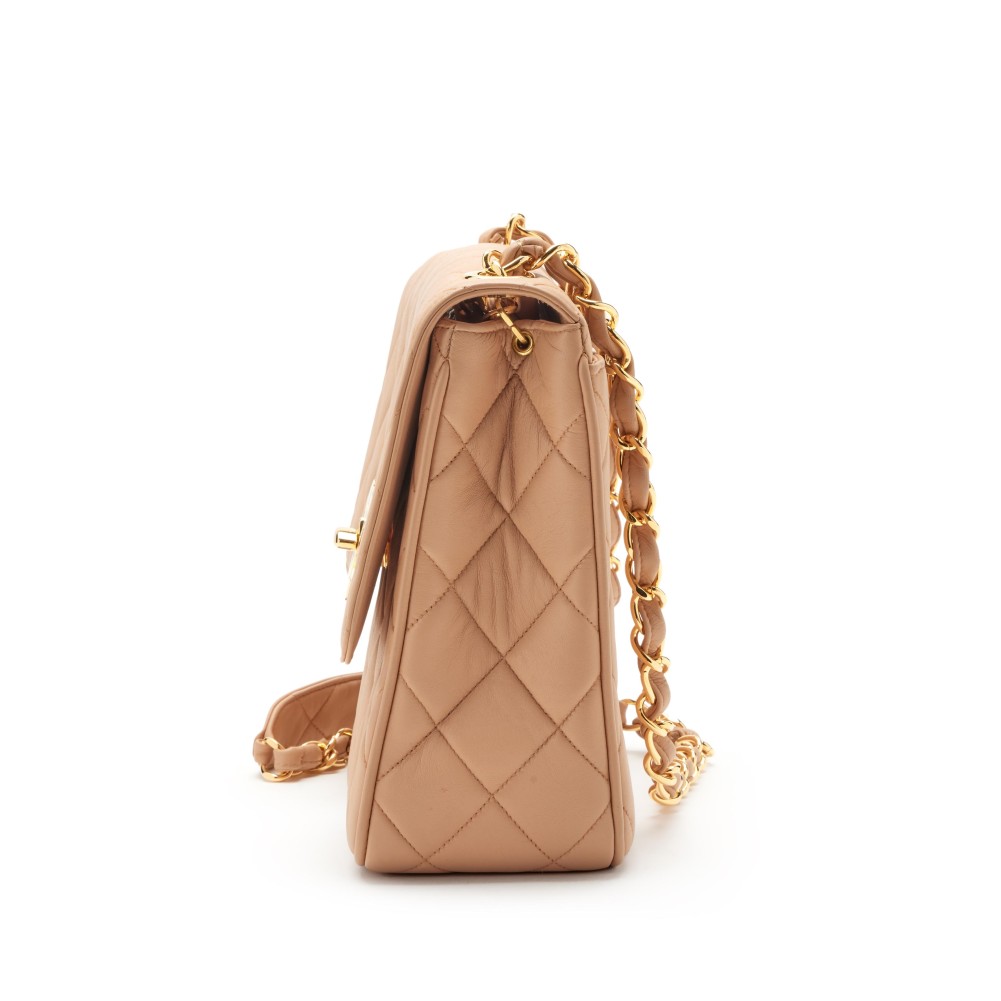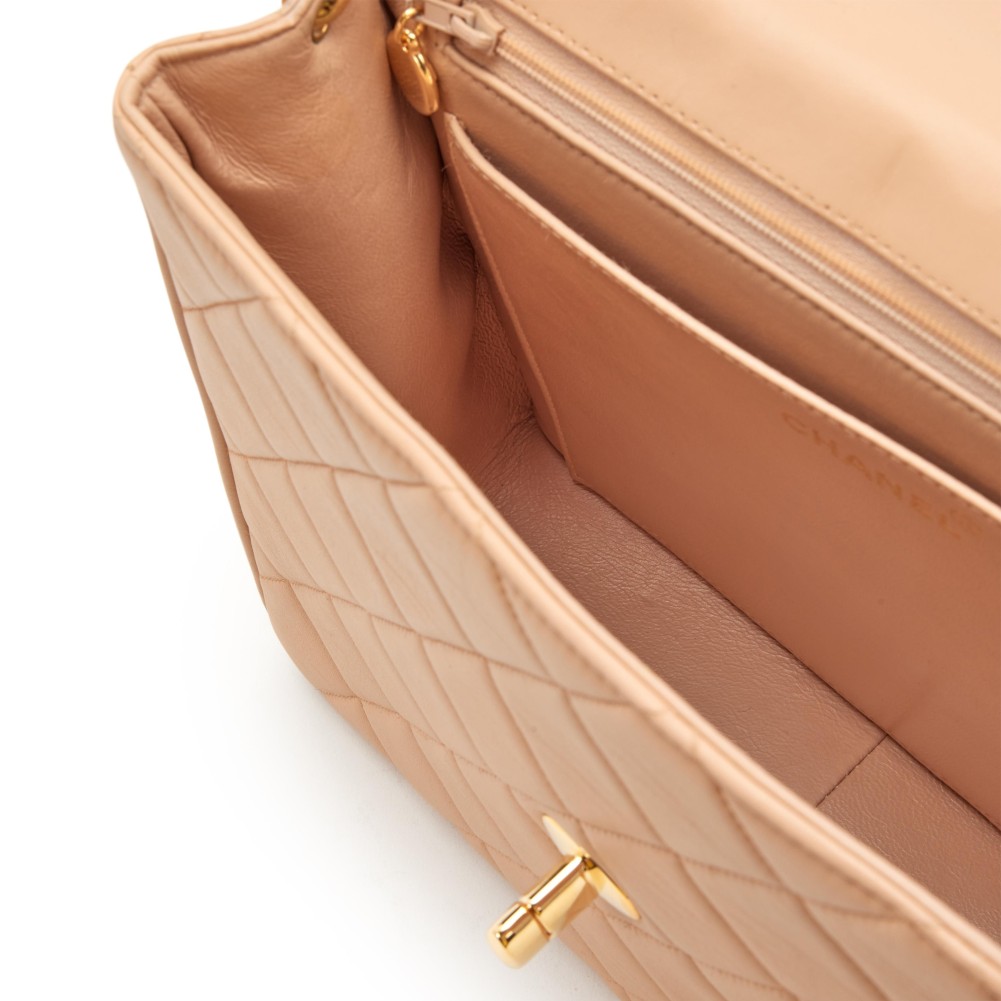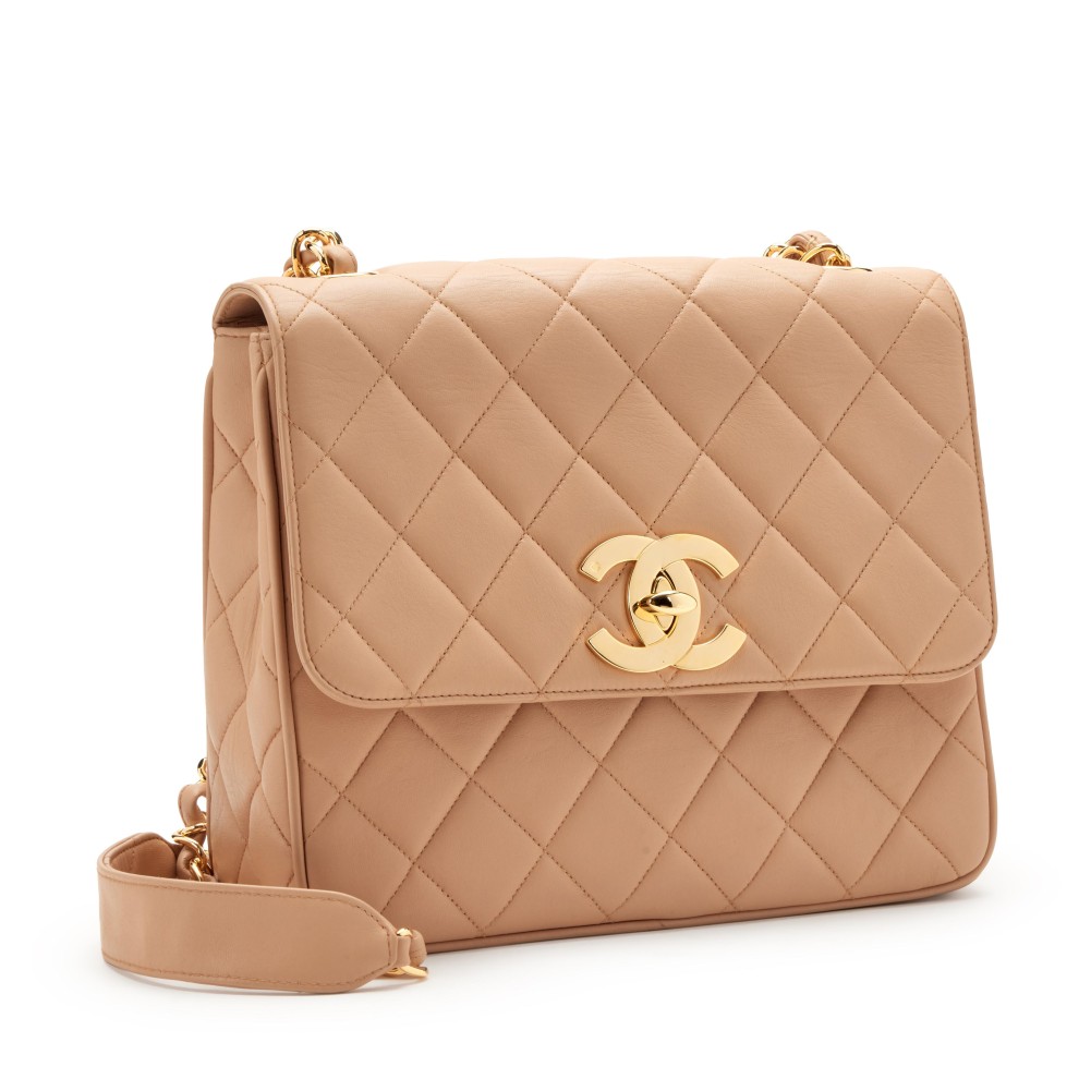 Chanel Beige Quilted Lambskin XL CC Jumbo Square Flap Gold Hardware, 1991-1994