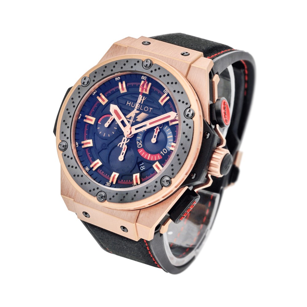 When it comes to collaboration, Hublot is no stranger to partner with giants from the sporting world, this time with the prestigious racing organization Formula One. Bearing the F1 logo on the dial and the strap, the present watch features an overwhelming presence of 48 mm diameter, complete with a powerful appearance of pink gold and titanium alloy, making it a statement piece of the Big Bang collection.