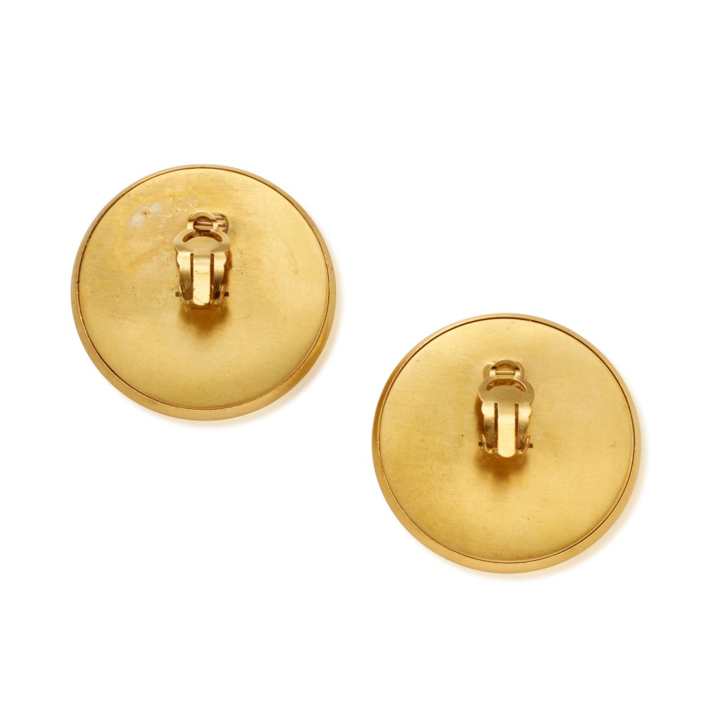 Chanel Black Acrylic and Gold Metal CC Earrings, 1992