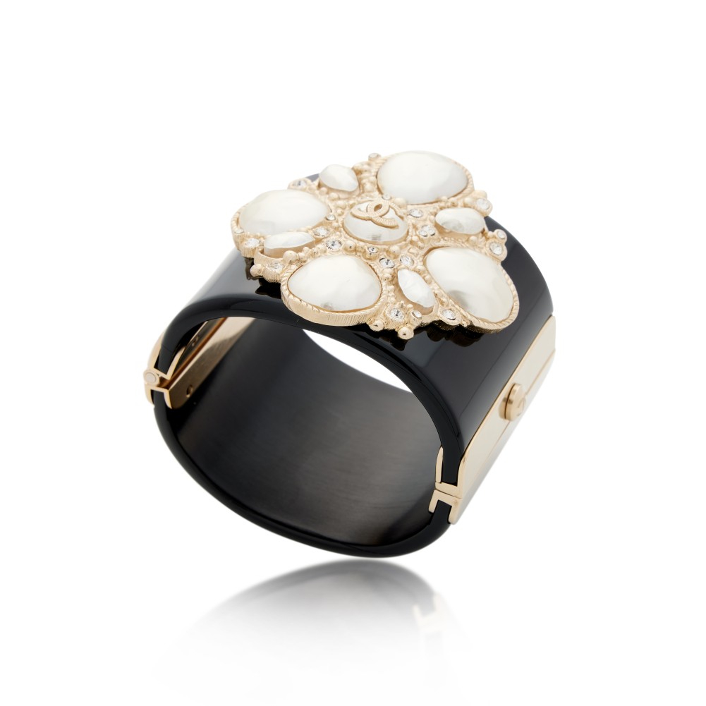 Chanel Black Acrylic Cuff with Imitation Pearl and Crystals, 2012