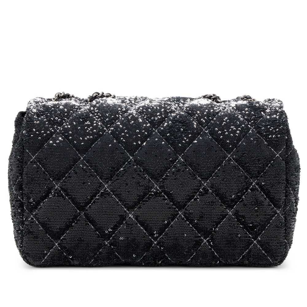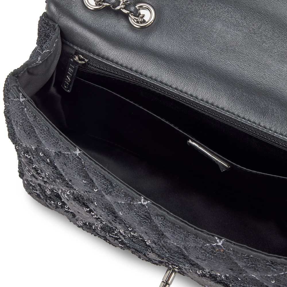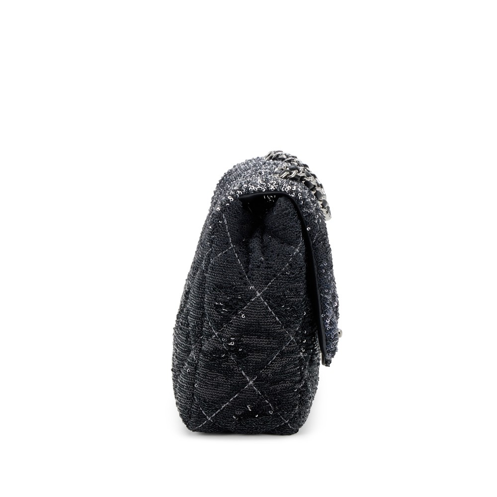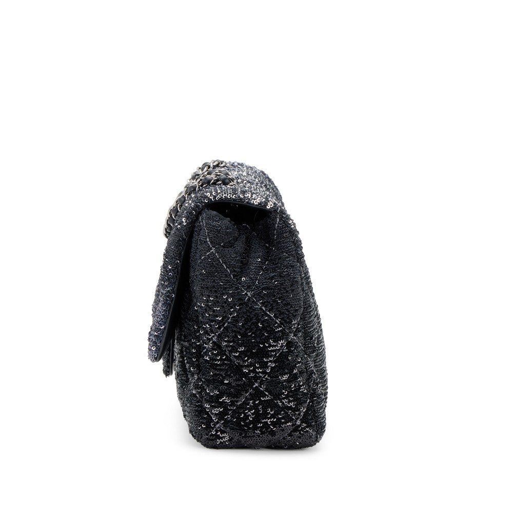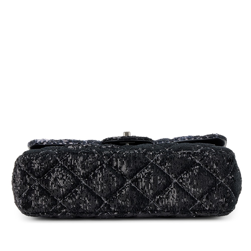 Chanel Black and Blue Quilted Reversible Sequin Medium Classic Single Flap Silver Hardware, 2020