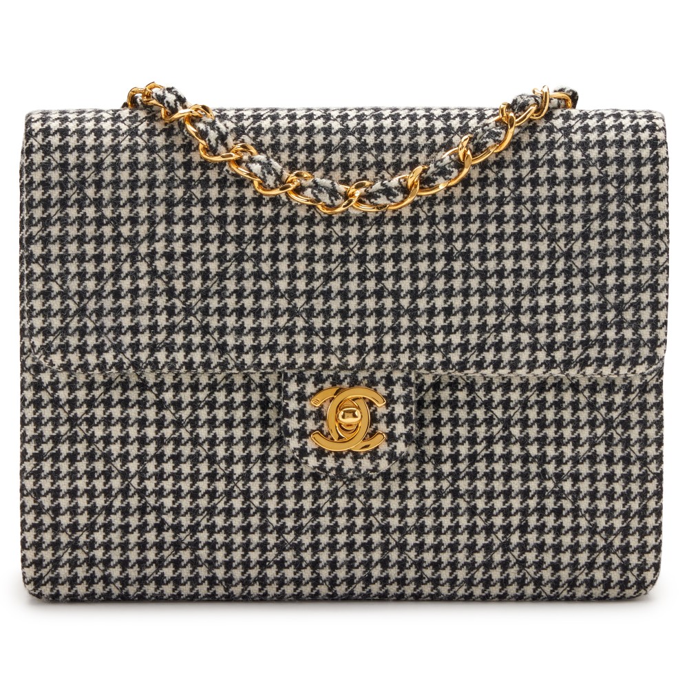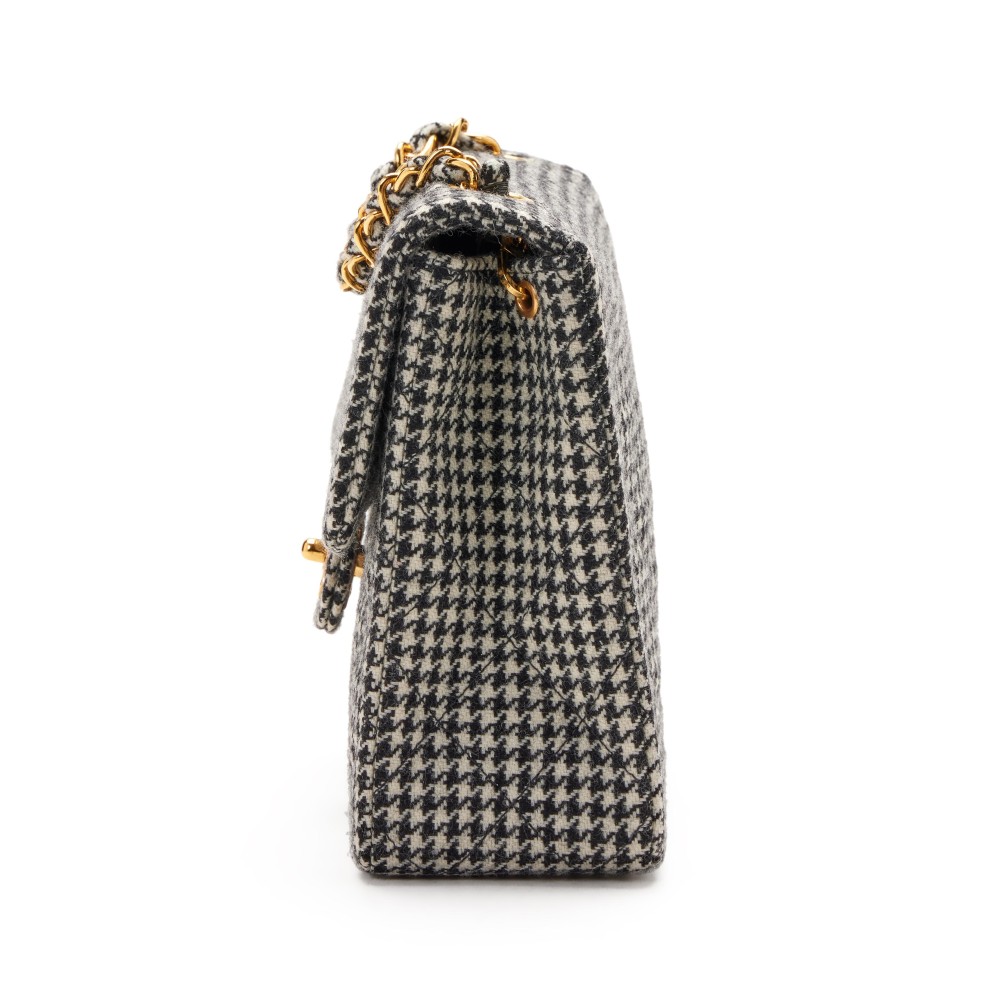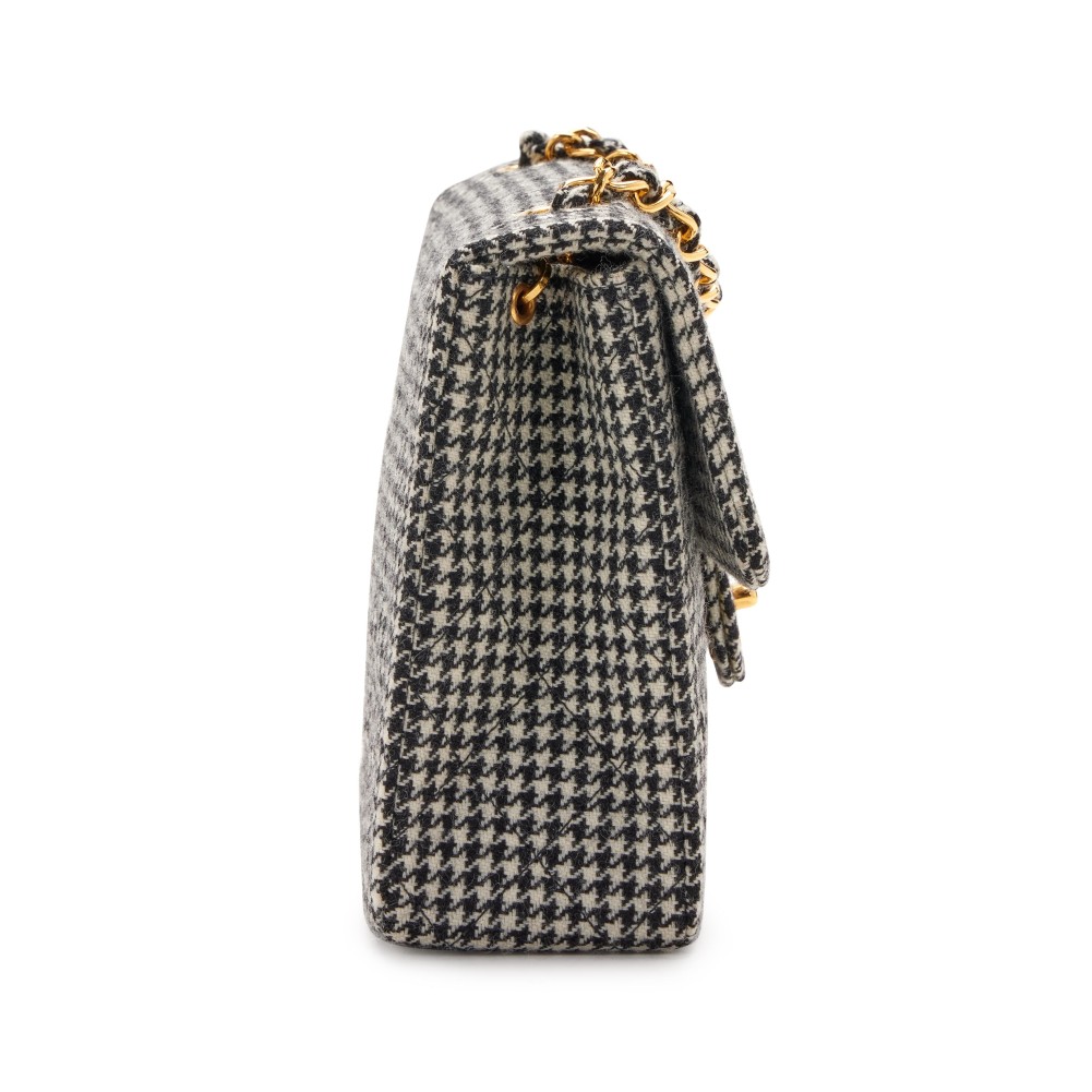 Chanel Black and White Quilted Wool Houndstooth Square Flap Gold Hardware, 1990s