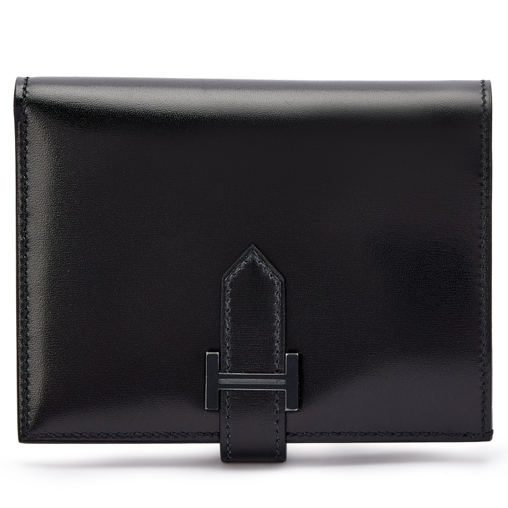Herm?s Black Box Compact Bearn Wallet Black Hardware, 2023