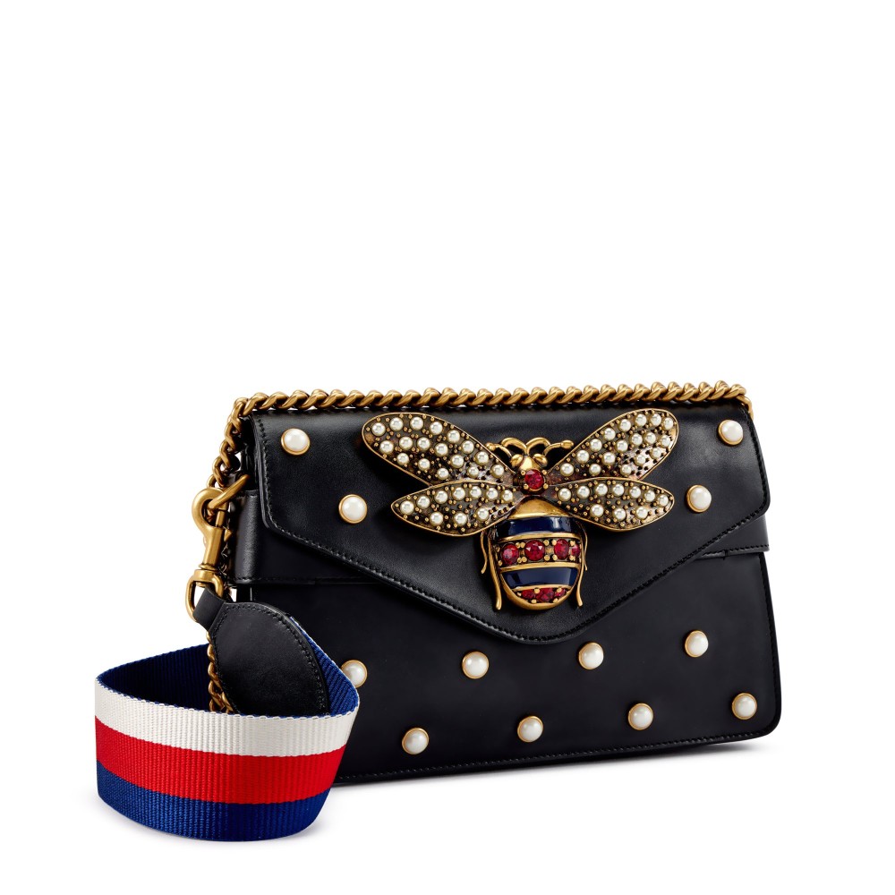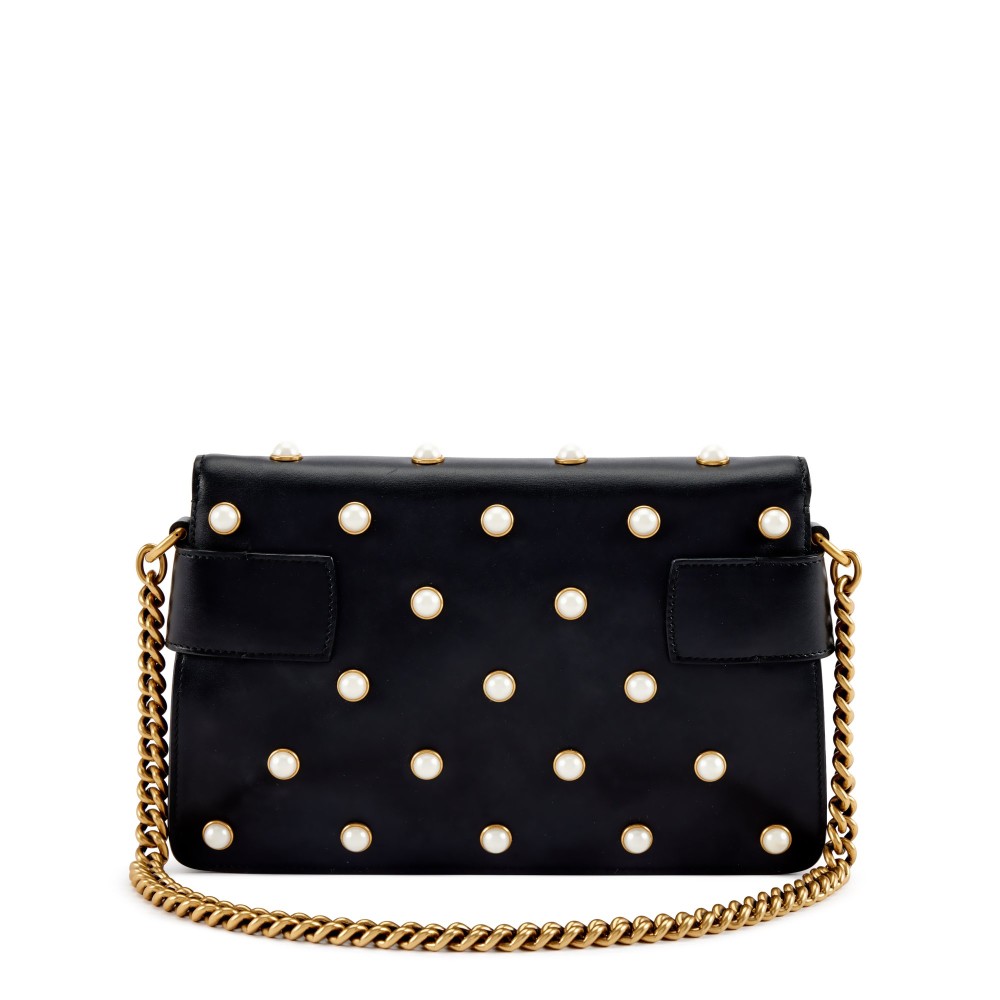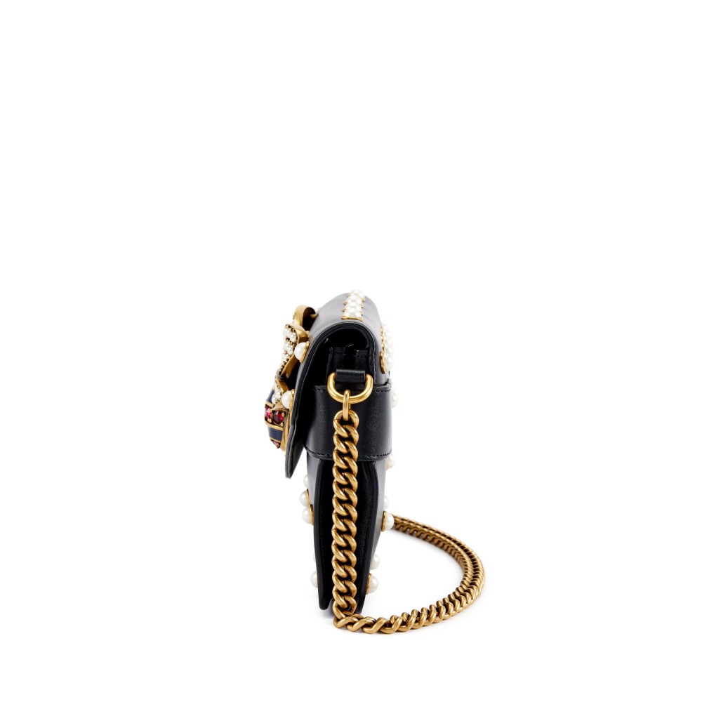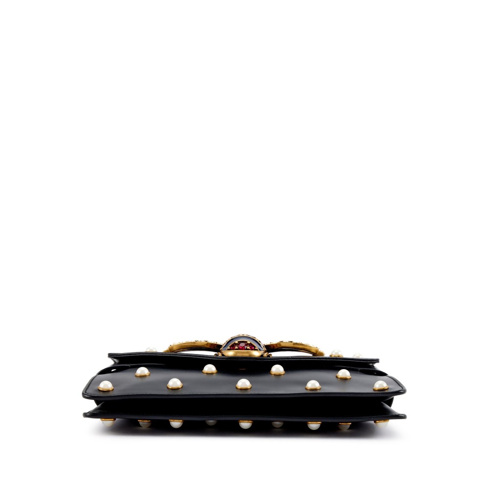 Gucci Black Calfskin, Imitation Pearl and Strass Mini Queen Margaret Gold Hardware