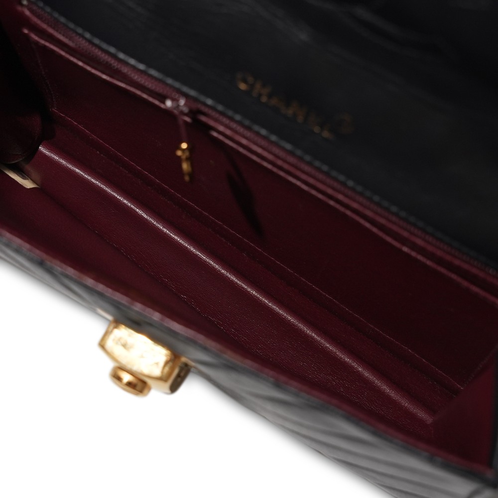 Chanel Black Chevron Lambskin Flap Bag Gold Hardware, 2014