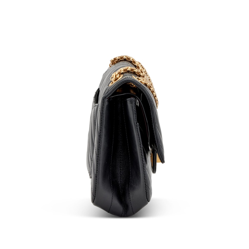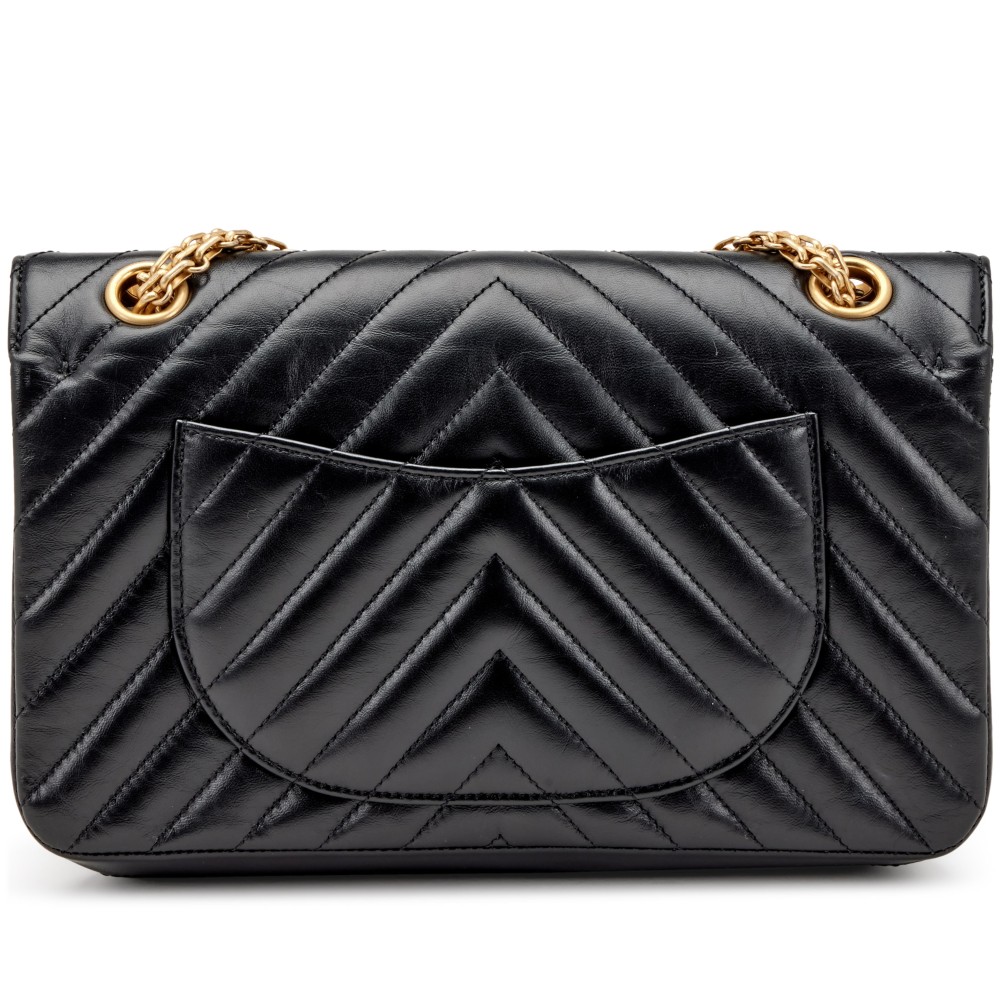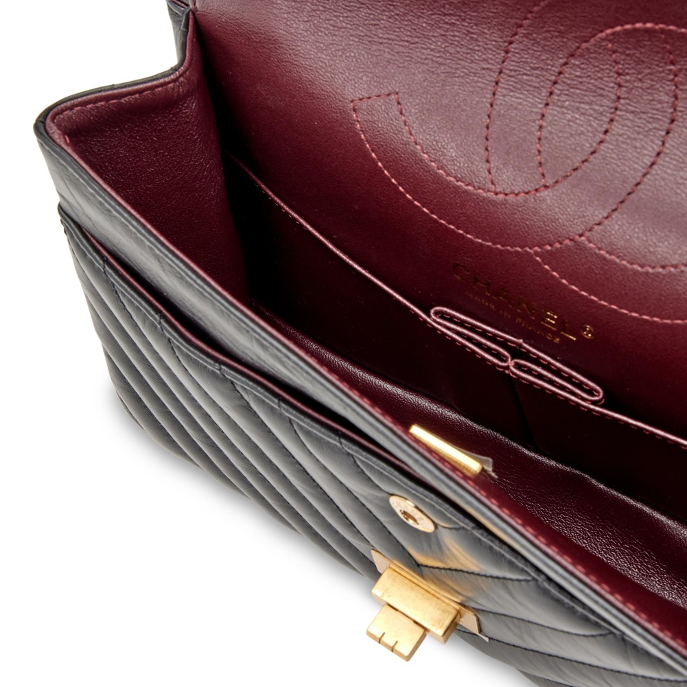 Chanel Black Chevron Quilted Calfskin 225 Small Reissue Double Flap Gold Hardware, 2022