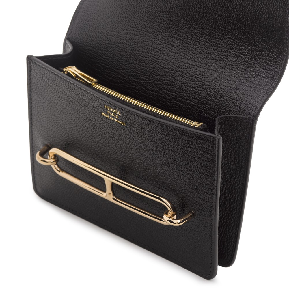 Herm?s Black Ch?vre Mysore Roulis Slim Wallet Permabrass Hardware, 2022