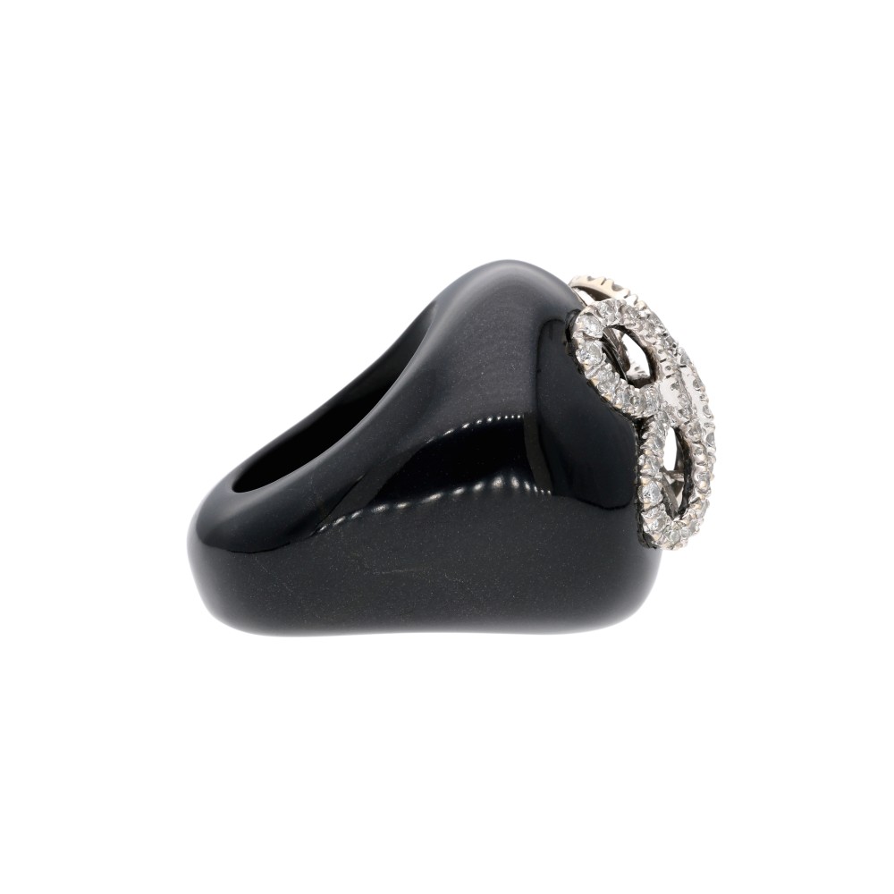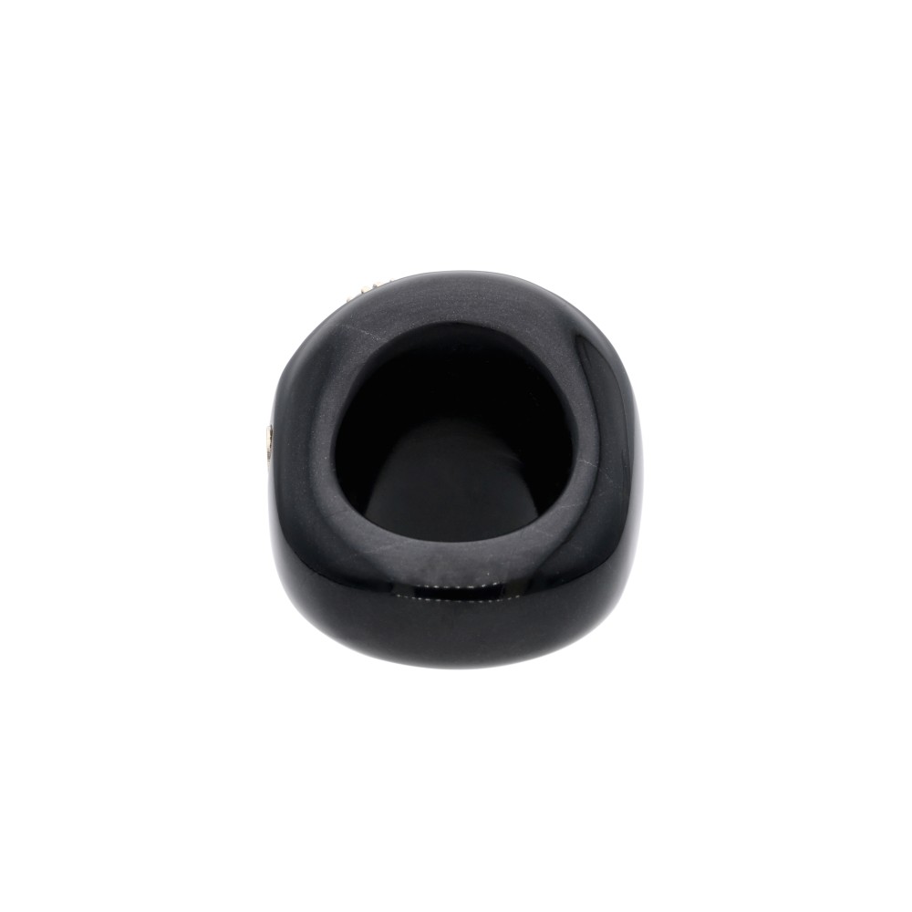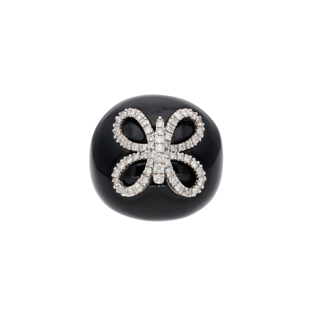 Composed of black jade, set with round diamonds in the shape of a butterfly.