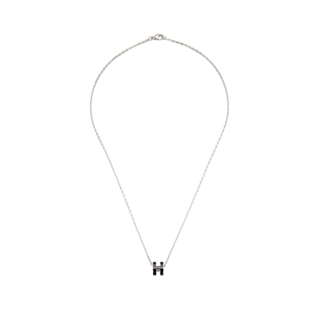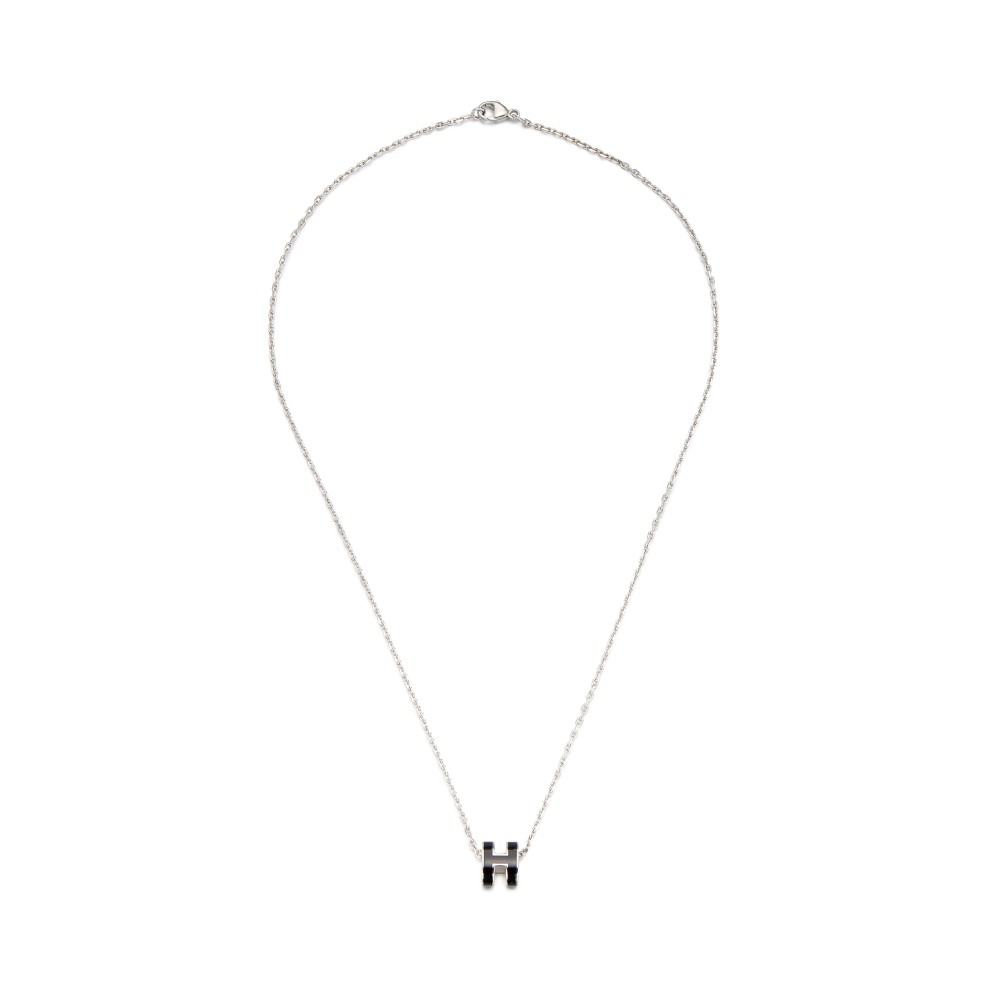 Herm?s Black Lacquer Mini Pop H Pendant Palladium Hardware