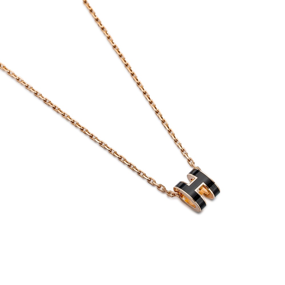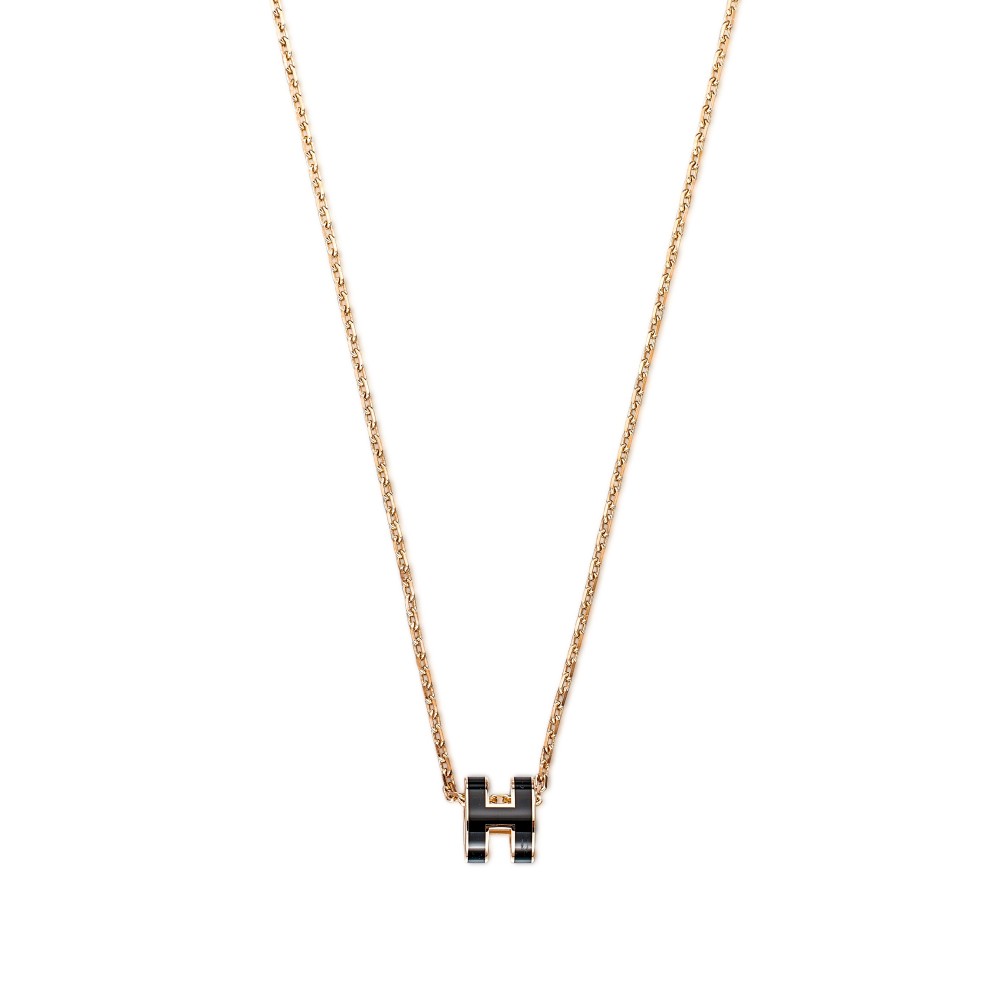Herm?s Black Lacquer Mini Pop H Pendant Rose Gold Hardware