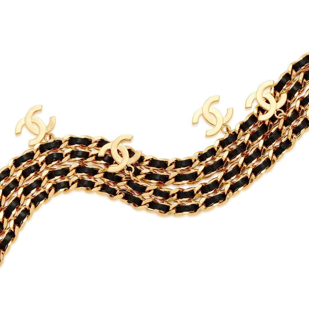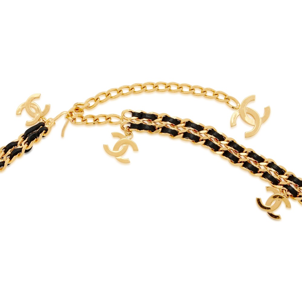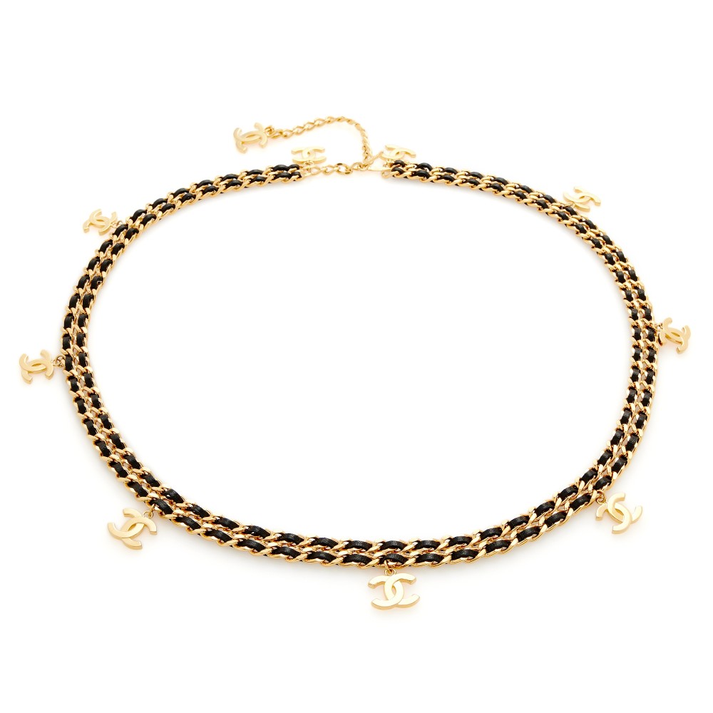 Chanel Black Lambskin and Gold Metal CC Charm Belt, 1997