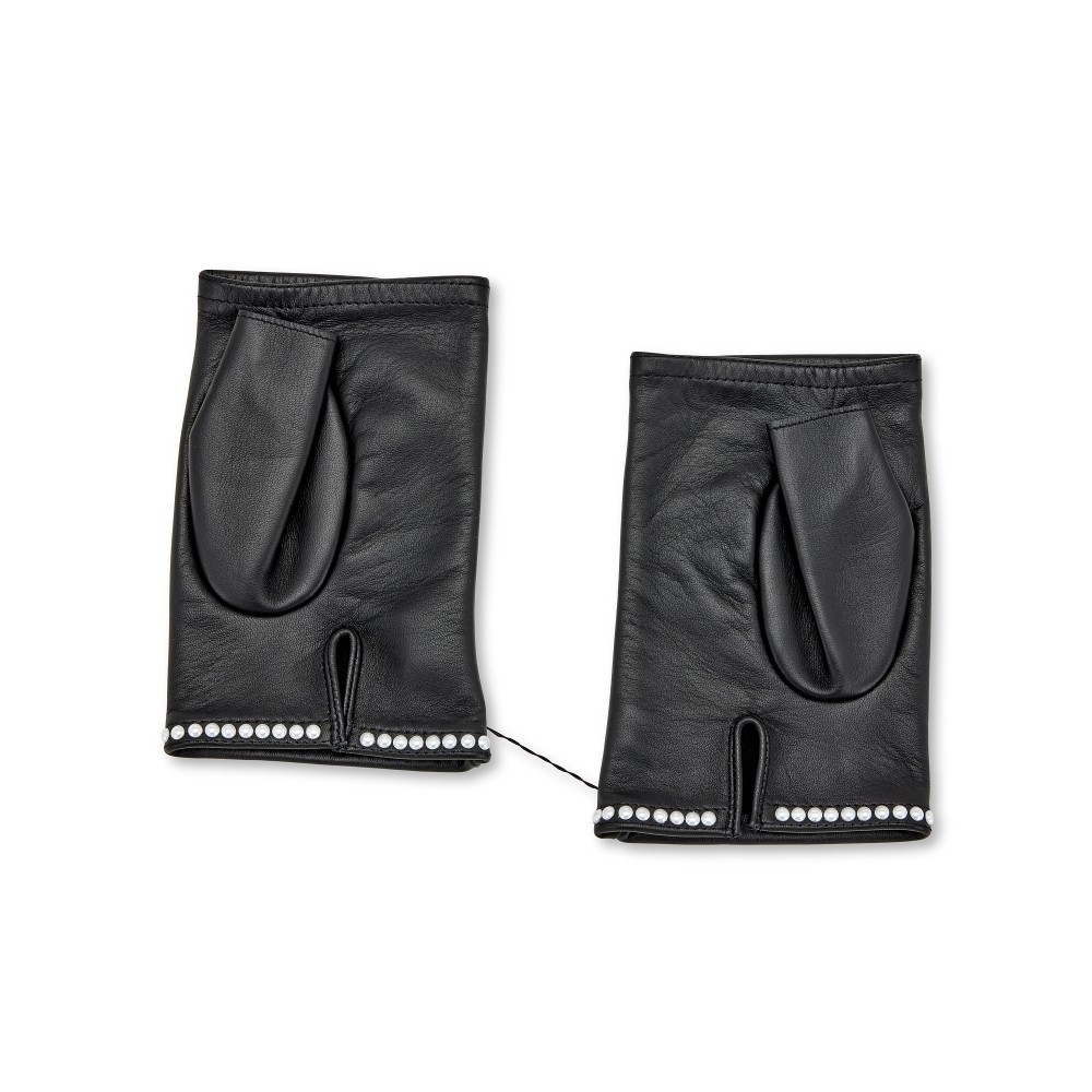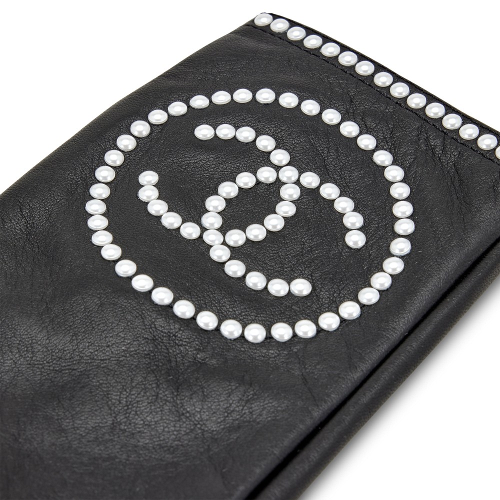 Chanel Black Lambskin and Imitation Pearl Fingerless Gloves 7.5, 2020