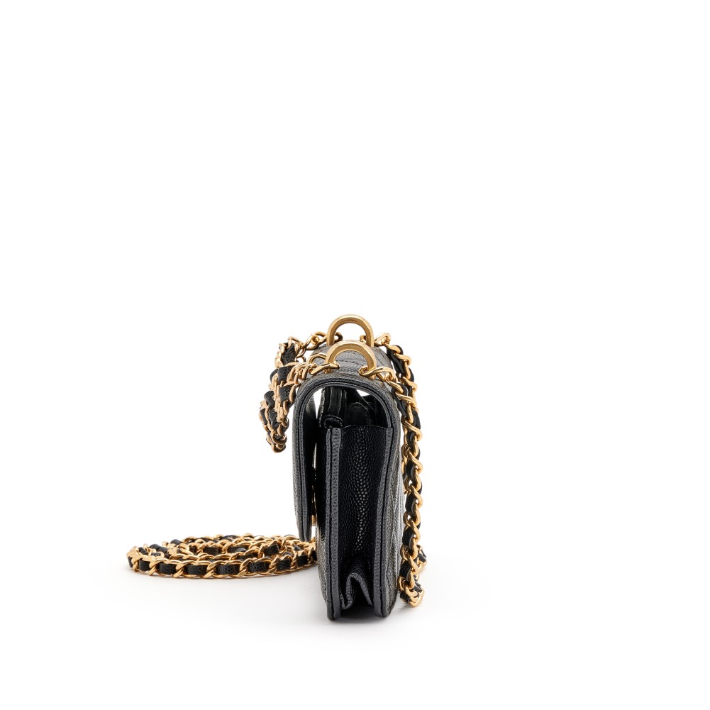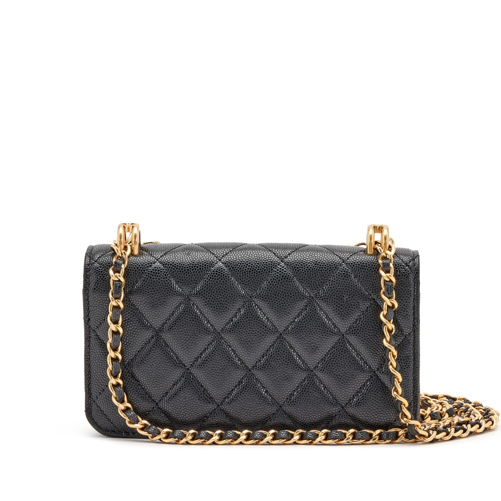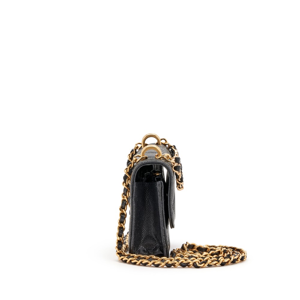Chanel Black Lambskin Quilted Pick Me Up Wallet on Chain with Chain Top Handle Gold Hardware, 2022