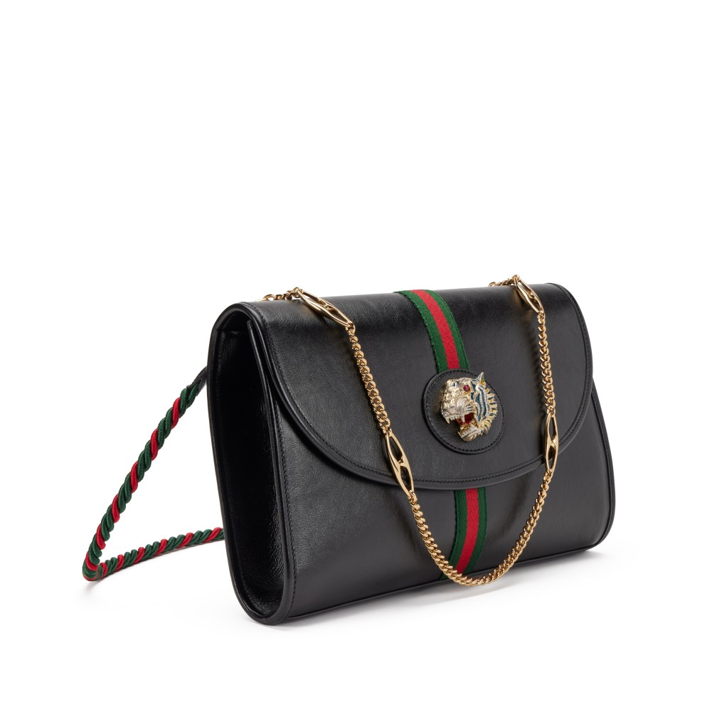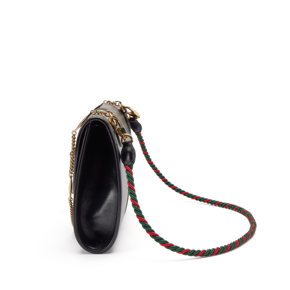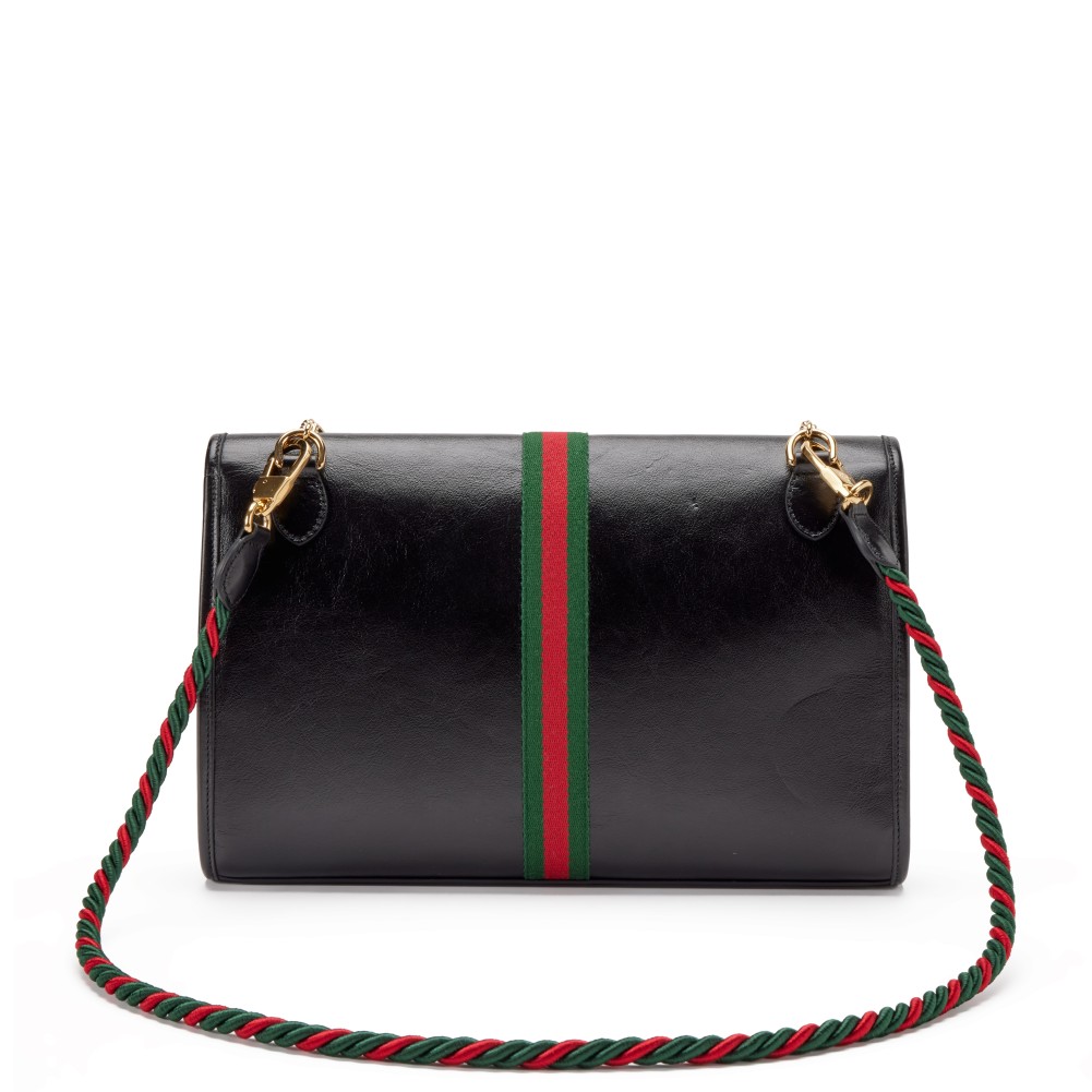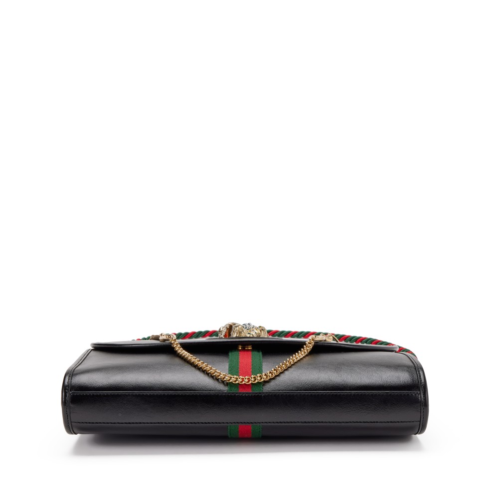 Gucci Black Leather, Strass and Web Stripe Medium Rajah Shoulder Bag Gold Hardware