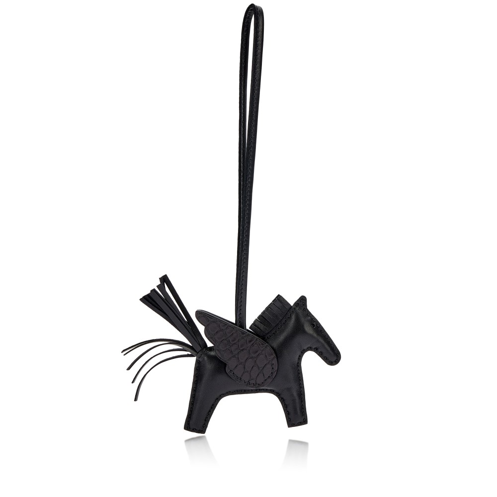 Herm?s Black Matte Alligator and Milo Lambskin Touch Rodeo Pegase Charm PM, 2022