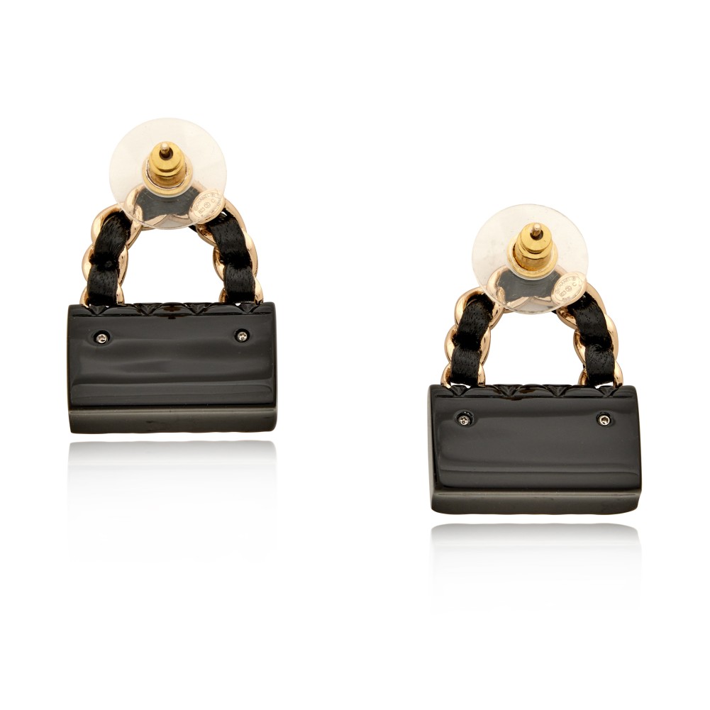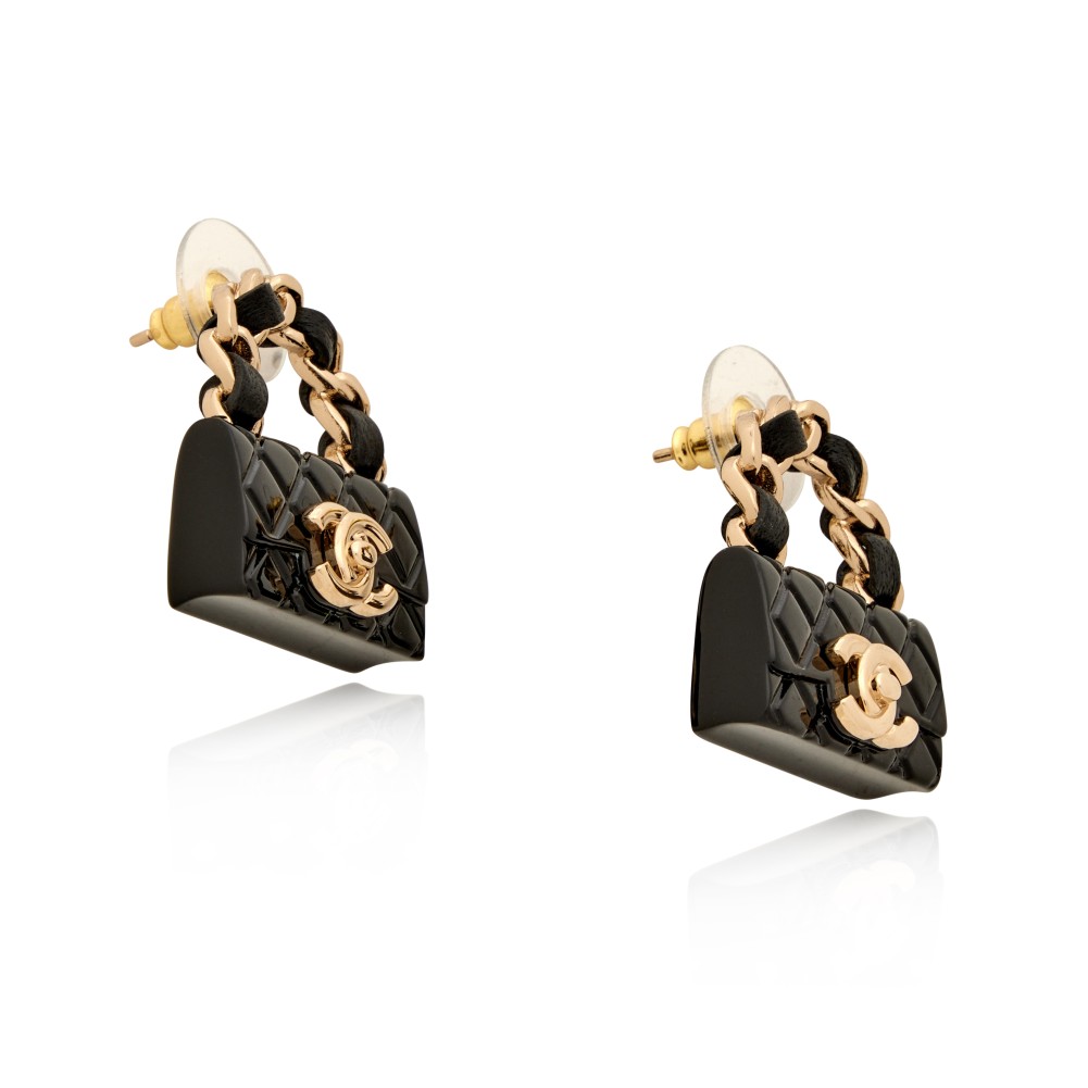 Chanel Black Metal Resin Lambskin Quilted CC Turnlock Chain Flap Bag Earrings, 2023