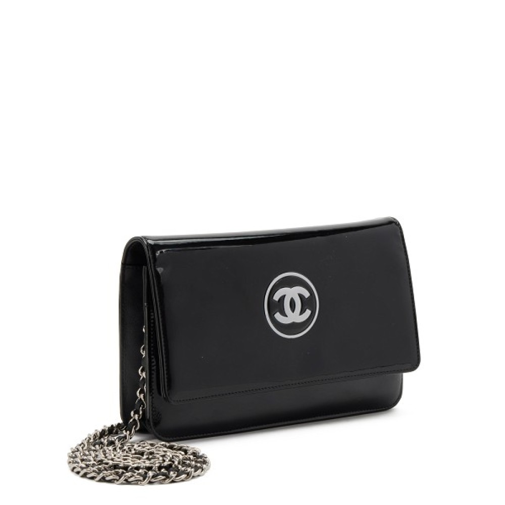 Chanel Black Patent Leather CC WOC Wallet on Chain Silver Hardware, 2012-2013