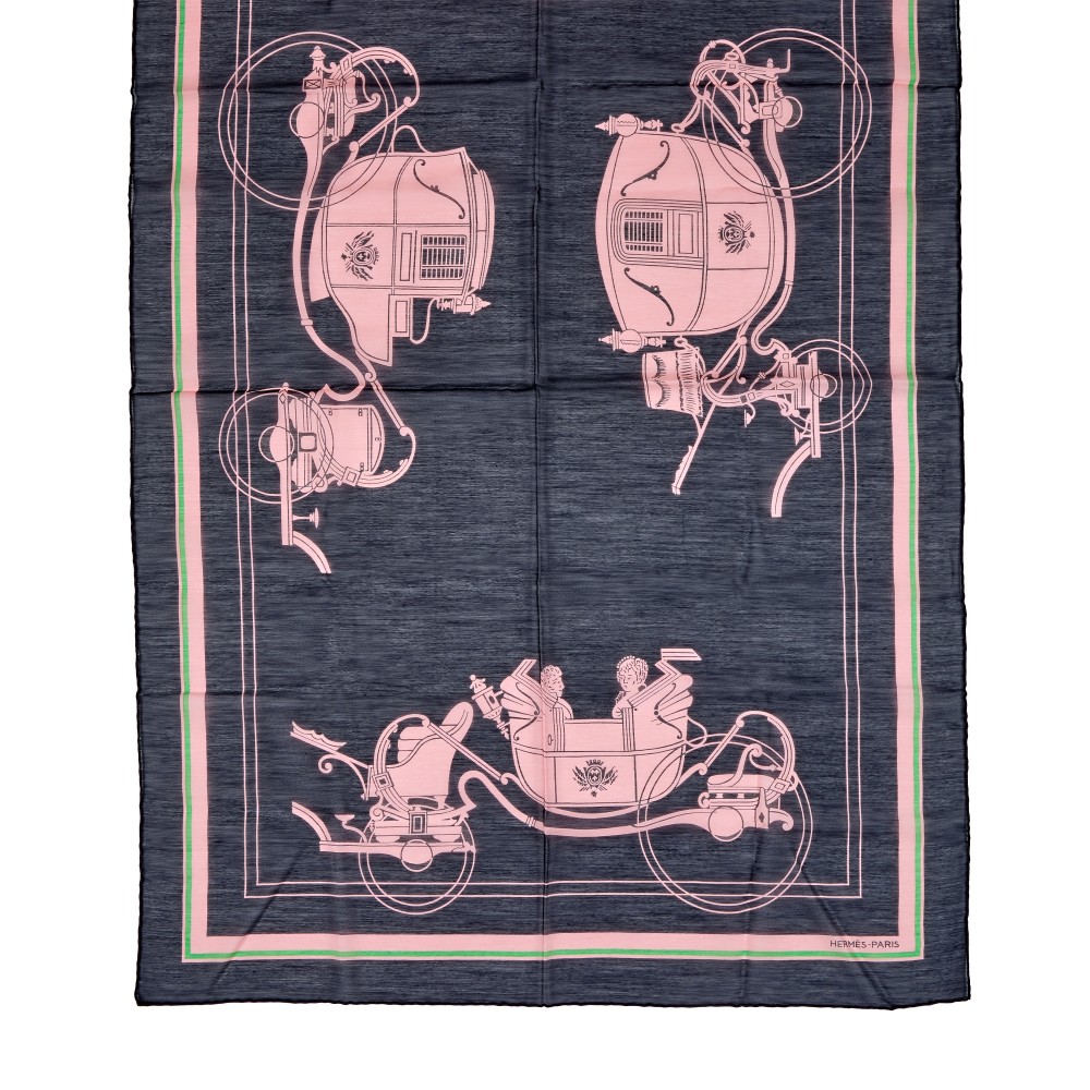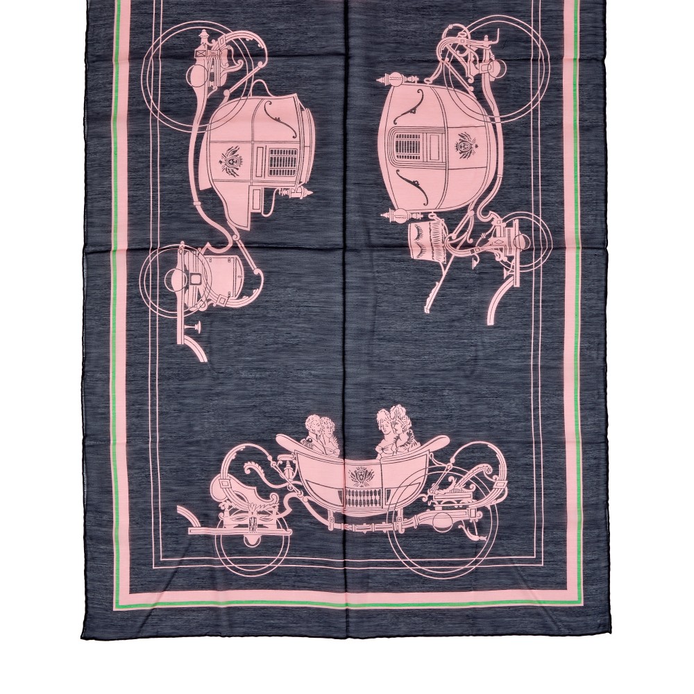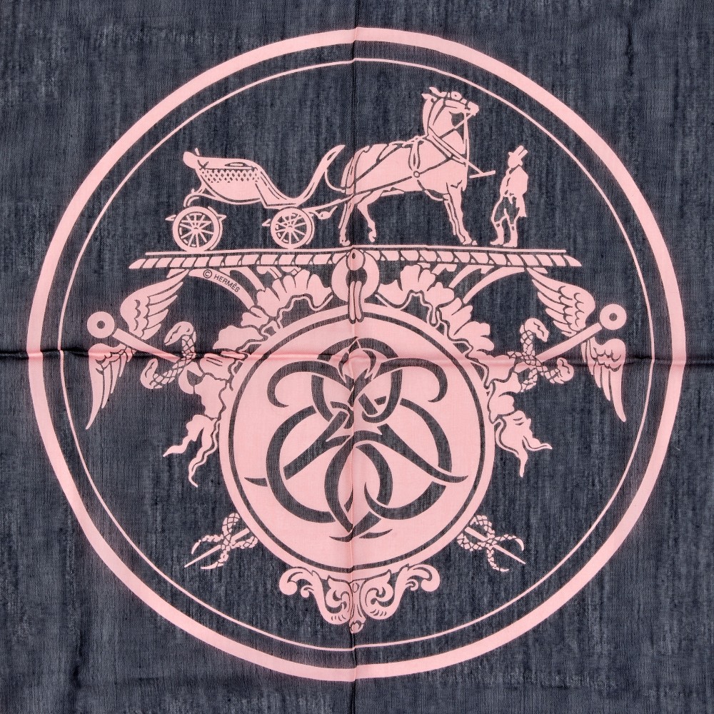 Herm?s Black, Pink and Green Ex Libris Cotton and Silk Scarf