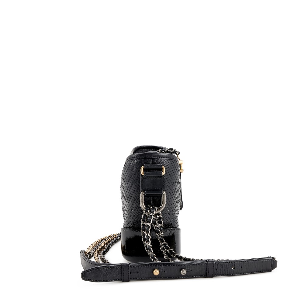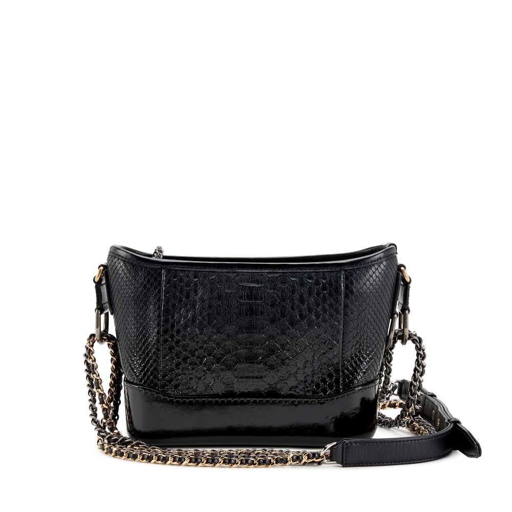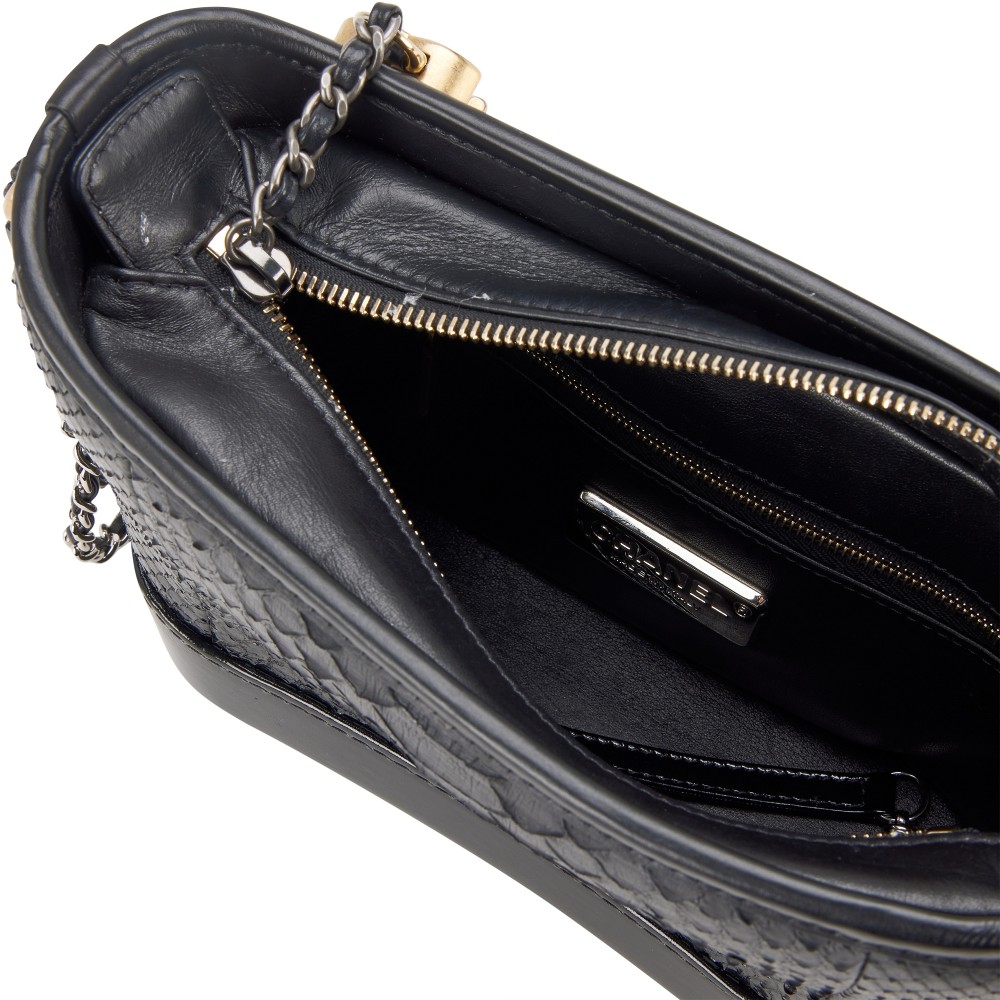 Chanel Black Python, Black Glazed Calfskin Small Gabrielle Hobo Gold and Ruthenium Hardware, 2018