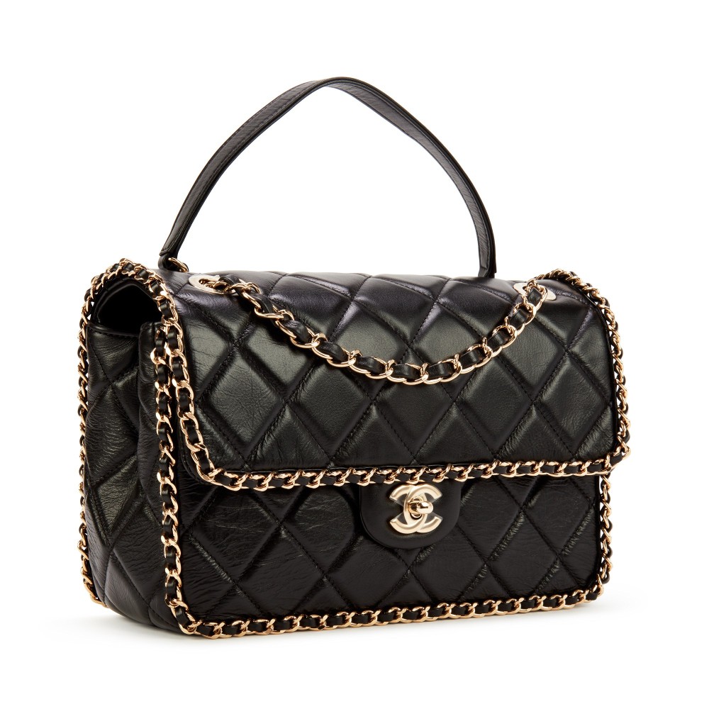 Chanel Black Quilted Aged Calfskin Medium Chain Around Single Flap Gold Hardware, 2020