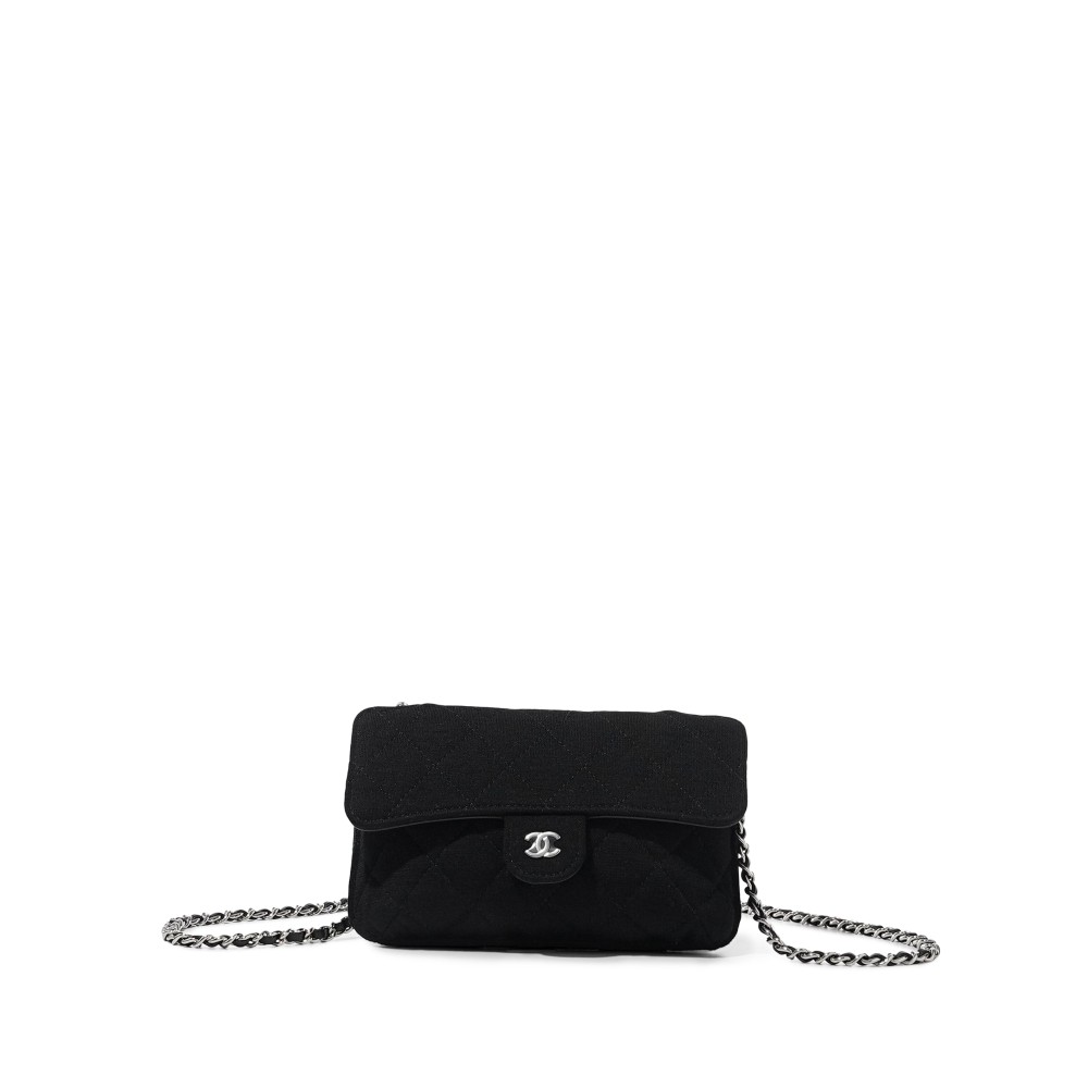 Chanel Black Quilted Canvas Clutch with Chain and Foldable Tote Bag Silver Hardware