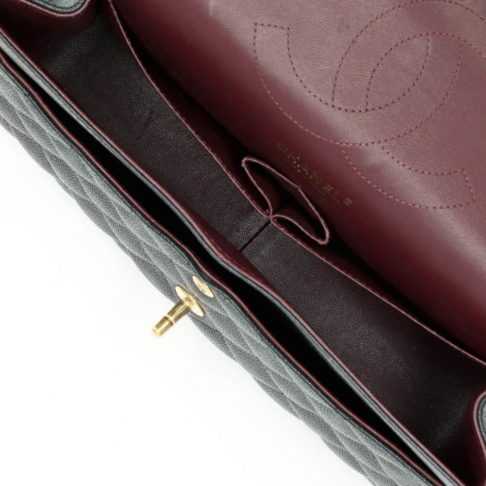 Chanel Black Quilted Caviar Jumbo Classic Double Flap Gold Hardware, 2014