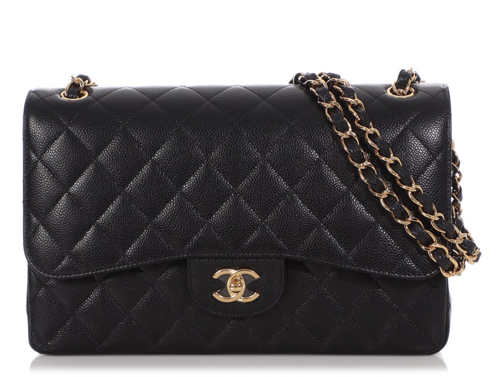 Chanel Black Quilted Caviar Jumbo Classic Double Flap Gold Hardware, 2021