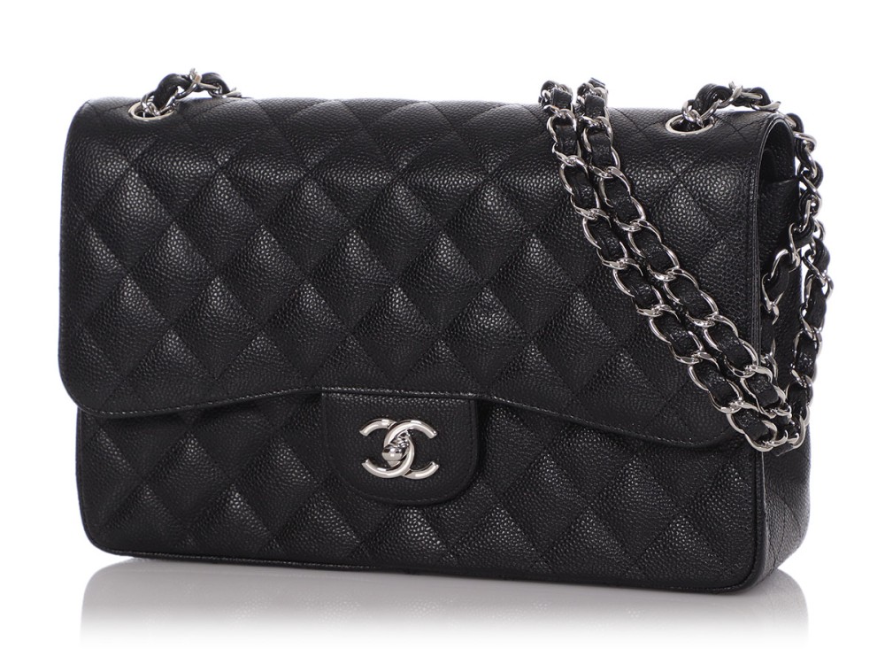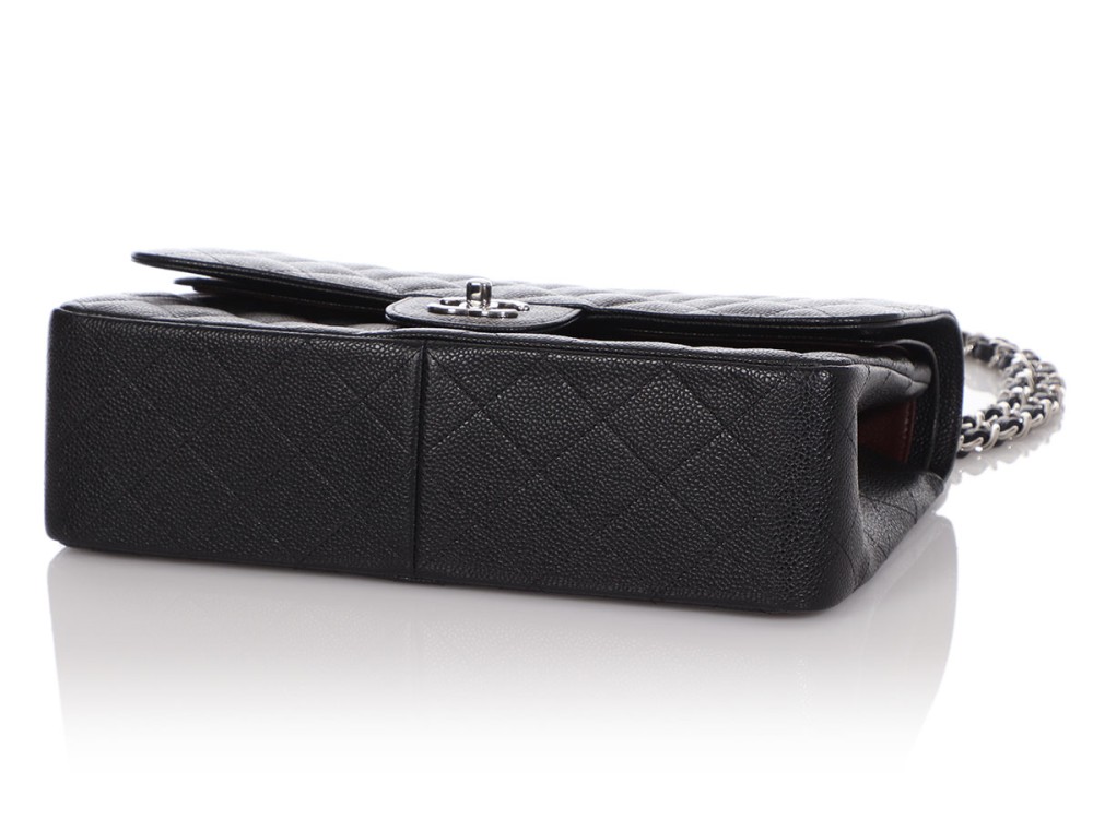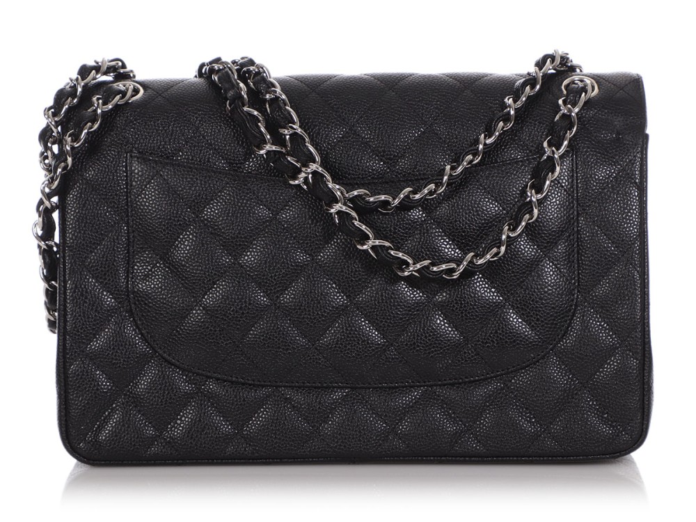 Chanel Black Quilted Caviar Jumbo Classic Double Flap Silver Hardware, 2013