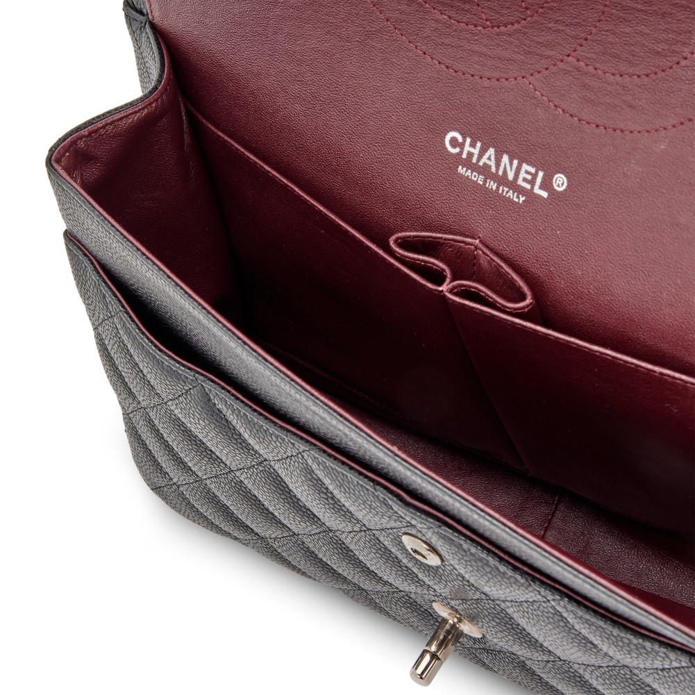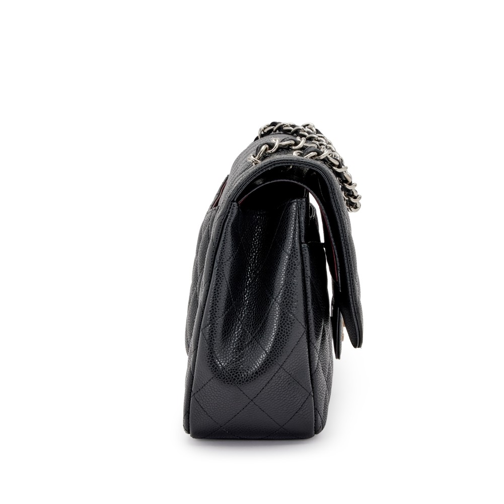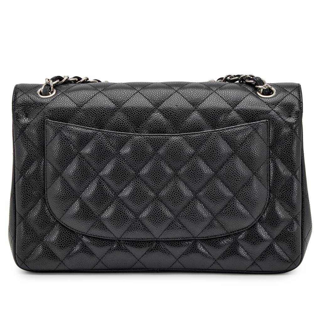 Chanel Black Quilted Caviar Jumbo Classic Flap Silver Hardware, 2010